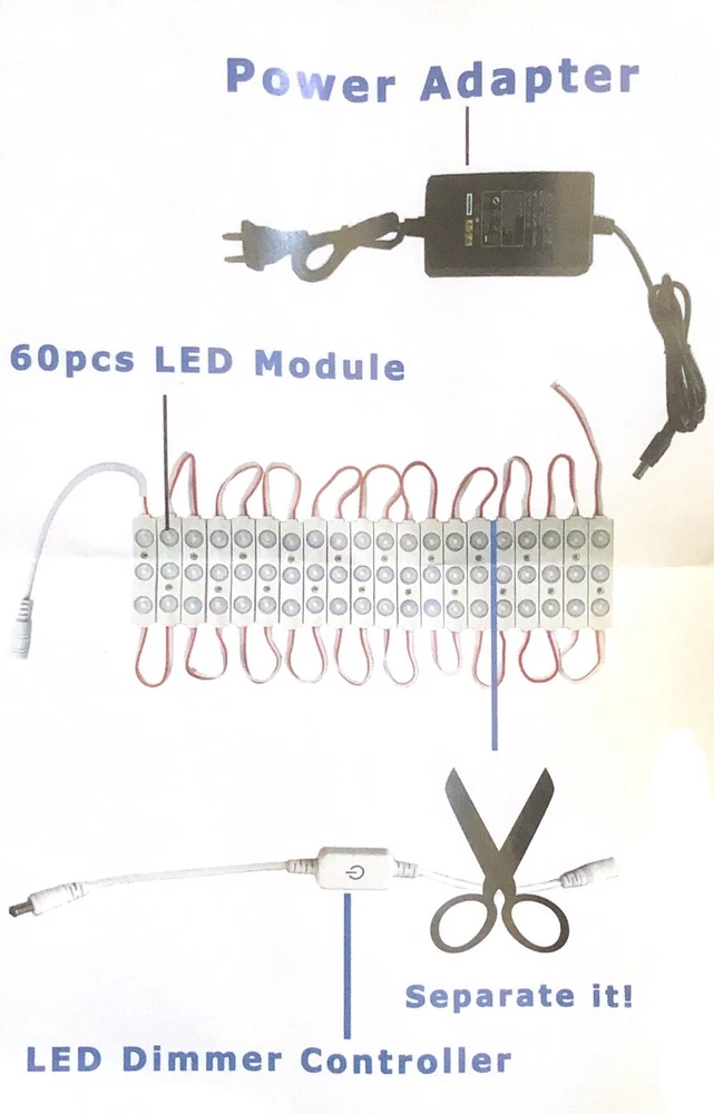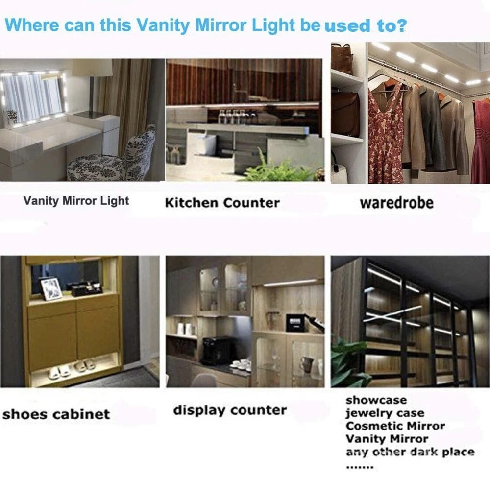 Dimmable Vanity Lights Makeup Mirror LED Light Kit 60 LEDs 10ft Hollywood Style. Condition is New. Shipped with USPS First Class Package. Product DescriptionSpecifications: • 【Excellent Mirror Lights】The dimmable led vanity mirror lights designed with 60 high quality Led beads,6000K daylight white,up to 1200lm brightness to make sure provide enough light to bright up your mirror. Note: Mirror Not Included. • 【Dimmable Vanity Lights】Easy to adjust the brightness (25%,50%,100%)with the dimmer switch according to your needs at any time.Don’t need to worry the light is too bright or too dark. Help you to get a more exquisite makeup. • 【Easy to Install 】Back with strong self-adhesive tape, just stick it on the mirror ,wall or any smooth place.Then connect the included safe 12V power supply.Enough 10FT length kits,you can cut the extra led strip after installation,but if you want to use the extra strip,you need to buy a connector to connect power supply by yourself. • 【Protect Eyes】Lighting is soft and not dazzling, no radiation,so your eyes not be hurt by the light and it is no problem to makeup for a long time.Makeup mirror light with waterproof feature, fit for bathroom perfectly and no need to worry about wet. • 【Multifunction】Long LED life expand to 50000 hours.Widely used for bathroom,vanity table,DIY lighting,living room, garage decorations, outdoor lighting and so on. • Viugreum Dimmable LED Vanity Mirror Lights Advantages: • Do you still use a mirror without light to makeup? • Do you want a convenient and beautiful mirror with lights? • Do you worry about the dark light or color difference when you makeup? • Do you worry about the light distress when you dressing up? • Do you like to decorate your mirror,your wall,your tv, your desk or diy some lighting things? • If yes,choose this mirror lights,it will be your best choice! • It will give you a wonderful lighting experience! Parameters: • LED qty: 60 (20*3 LED) • Lumens: 1200LM • Color: 6000K • Power: 0.5W per LED • Waterproof: IP65 Power:1.2W/3led (60 Led beads(20 x 3LED) ) • Input Voltage: AC100-240V • Output Voltage: DC 12V • Total length:10ft • LED strap total length: 5ft • Each LED group space: 3.2inch • Power cord length: 4.7ft •. LED life last long to 80000hours. Led vanity mirror lights: 1 x Hollywood LED light kit 1 x smart touch dimmer 1 x high quality adapter 1 x instruction manual Ceiling Fan Remote Control kit Main Technical Parameters Peel off and stick; Plug and play. Cut the extra length(at the end) if too long Fits any shape of mirrors, Attach on any flat surface. Easy to remove and re-position with the included extra stickers. High quality adhesive backing, and it comes with extras if you need to replace! Dimmer touch to adjust brightness Super Stick,won't drop down off easily IP65 Waterproof, indoor use only, or use in the bathroom mirror white led mirror lighs Cautions: - They are not a replacement for your bedroom light, please do not leave lights on for very long periods of time. They are vanity lights meant to be on for 1, maybe 2 hours while you do makeup, hair, etc. NOT ALL DAY. Any light can get really hot if left on for a very long time which may cause some of them to melt the stickiness and fall. -Just be patient when installing. Rome wasn't built in a day. Take the time to wipe the mirror with alcohol and press them on well. - The sticky part of the back of the bulbs really stick to the mirror so be careful when placing them on it. - They are indoor use mirror lights. Can not be submerged in water. Features & details ☞Perfect for Diy Glam Hollywood Style Vanity - If you have always wanted a Hollywood style vanity but not enough to spend hundreds of dollars on one. These led vanity mirror lights give you that look for next to nothing. ☞Easy & Stress-free Installation - No wall or holes drilling. Your best beauty investment. No assembly or electrical wiring is required, just stick firmly these led vanity lights to a wall, mirror, or mirror frame and you’re good to go! ☞Multiply Application - These makeup mirror lights are waterproof. Ideal for Living room, Bathroom mirror-front lighting, Mural, Vanity table and Art display or home use, chose wisely on where you would like your lights. ☞Smart Touch Dimmer - Come with smart touch dimmer, touch to adjust brightness and turn off/on.Perfect, affordable lighted wall mirror you can use daily while applying makeup, taking photos of makeup looks, and even recording makeup tutorials. ☞Nice Look - This led vanity light is beautiful, very bright and chic ! Perfect for your vanity mirror! Perfect solution for your search to add better lighting for your make up table.