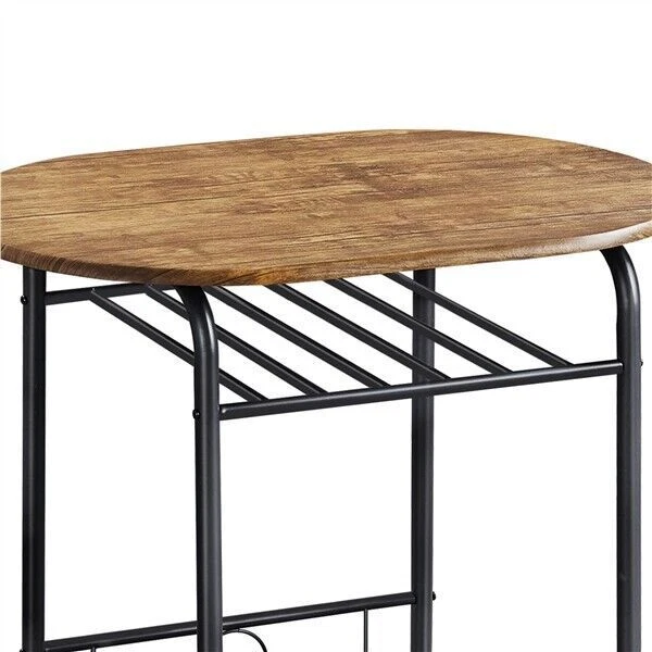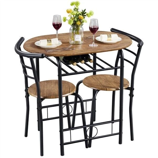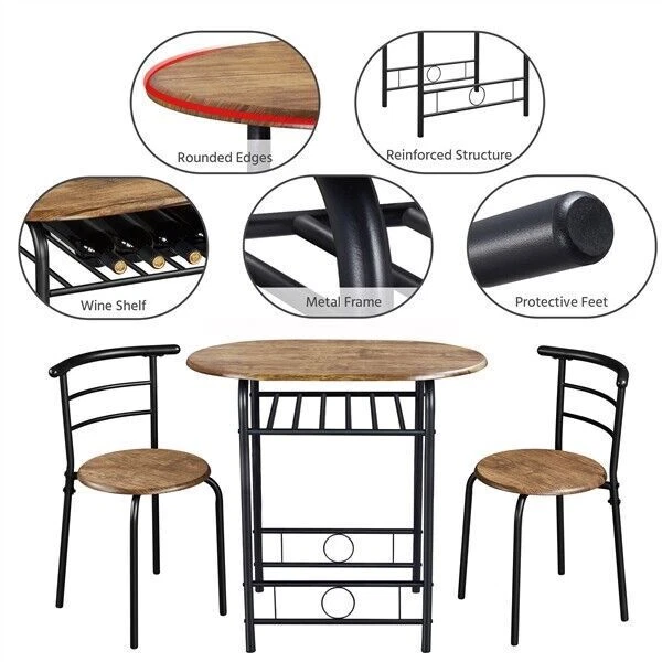 【Designed for Small Spaces】Measuring 31.5’’ L x 21’’ W, the oval tabletop is large enough for 1-2 people to dine, read or have a close chat cozily. The chairs perfectly fit the curving edges of the table, allowing you to entirely tuck them away when not in use to free up extra space for you. The space-saving design makes this set the perfect accent for compact spaces. 【Supportive & Firm】This kitchen table set includes 2 chairs with a mid-height backrest and round wooden seat. A curved slat backrest perfectly wraps your back and gives you strong body support. You can also add seat cushions to achieve a softer sitting experience. 【Extra Storage Rack】Fitted with a convenient rack under the tabletop, this breakfast table provides additional storage space for wine bottles, napkins and other essentials, or you can remove the shelf for extra leg room. The timeless color scheme and small dimensions make this set perfect for the kitchen, balcony, bedroom, apartment, dorm room, office, temporary activity & party, etc. 【Compact Size】Measuring 31.5’’ L x 21’’ W, the compact oval tabletop allows one or two people to dine, work, study, play cards or chat as wanted. The lightweight design makes this set easy to move around for your changing needs. It could perfectly fit into a small kitchen, dorm room, apartment or a corner of your house to create a cozy nook for dining or relaxation. 【Considerate Details】Rounded edges of the table reduce the risk of people hitting their bodies, making this 3-piece table set safe for all family members. Reinforced chair structure ensures a steady sitting experience. Packing List:
