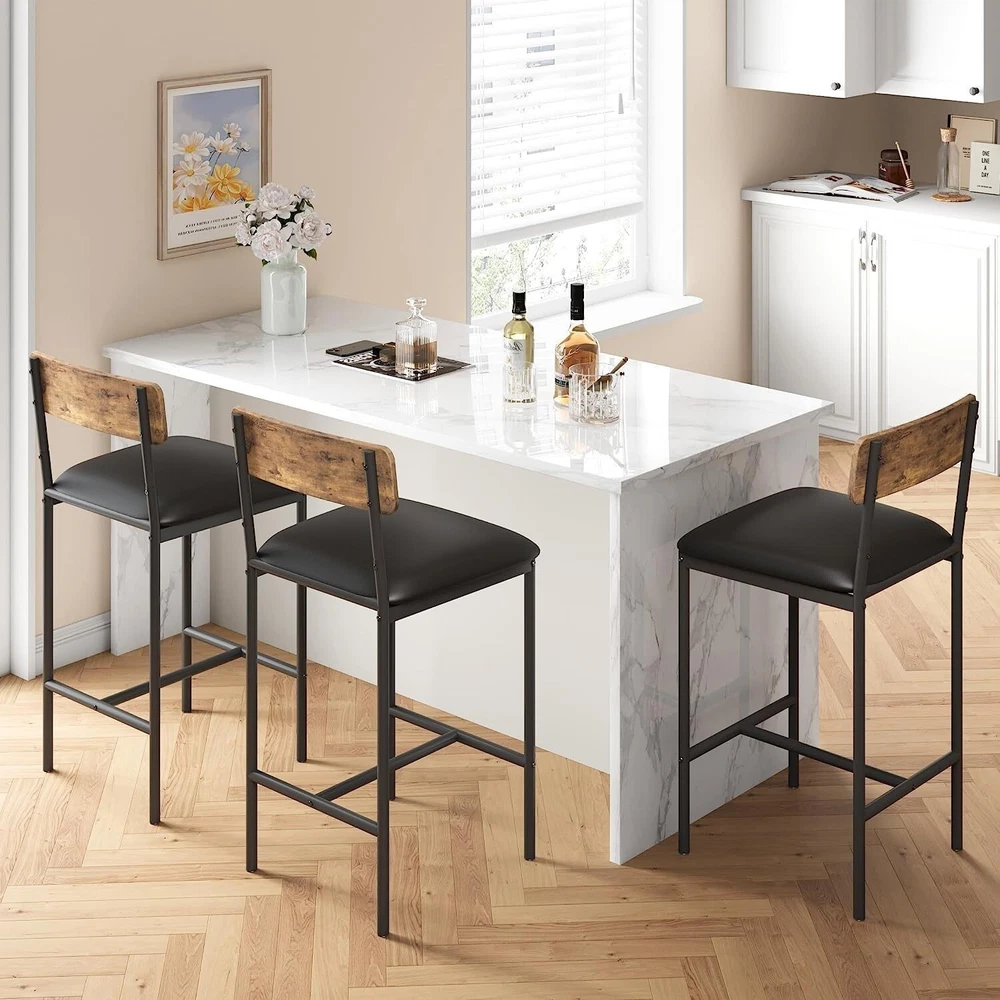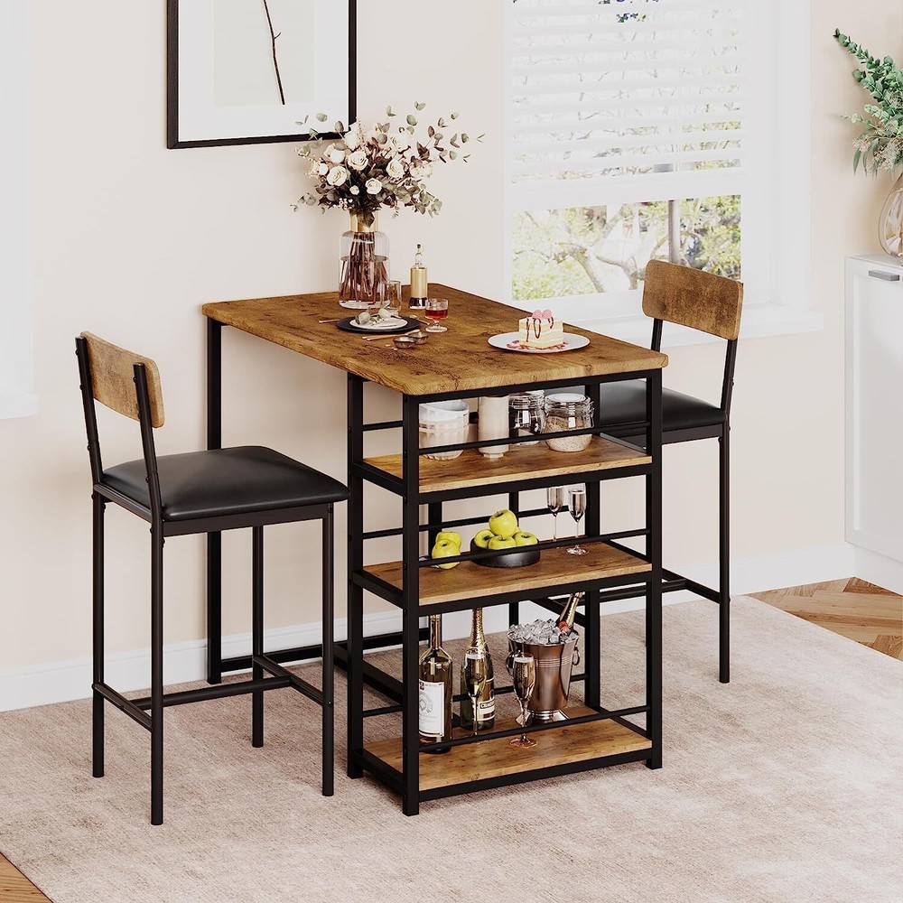 Dining Table Set Kitchen Table and Chairs for 2 or 4 Kitchen Table Dining Room🔥 Dining Table Set for 2, Bar Table and Chairs for 2, Pub Table Set with 2 Upholstered Chairs Dining Table with Upholstered Chairs: The dining table with thick table top makes it look more stable. The Upgraded Chair seats and backrest are padded with thick cushions, keeping you comfortable all dining time. More comfortable than traditional wooden chairs. Space Saving Design: Make the most of your space with this 3-piece table chairs set that slides the chairs seamlessly under the table to maximize your limited space. Cozy Upholstered Chairs with Sturdy Frame: The use of metal pipes with a larger diameter makes the dining chair more stable and comfortable than other products. The chair's back curves and offers you comfortable support. Dining Table Set for Living Room Retro industrial design fits well with any decor and adds a unique rustic element to your ktichen or living room. Dining Table For Kitchen Large Space Top The wide table top offers enough space for 2-4 people. Enjoy your dining time! Thickened Metal Frame with 3 Large Storage Shelves Made of Thickened Metal Frame and quality particle board, The structure is more stable. Upholstered Seat and Backrest The Upgraded Chair seats and backrest are padded with thick cushions, keeping you comfortable all dining time. More comfortable than traditional wooden chairs. Specification: Color Brown/Gray/Brown Material Metal/MDF Board/Artificial Leather Weight 55.1 LBS Max. Load Capacity Table 150 LBS / Chair 300 LBS Dimension Table 36” L x 19.6” W x 36” H CHAIR: 14.5” L x 16.5” W x 37.4” H Package Includes 1 x Dining Table, 2 x Chairs, 1 x Instruction, 1 x Accessory Bag Additional Parts Required No Assembly Required Yes Brand Unbranded Indoor/Outdoor Indoor Material Metal, Wood Max. Load Capacity Table 150 LBS / Chair 300 LBS Mounting Freestanding MPN Does not apply Number of Items in Set 2/3/4 Number of Shelves 3 Pattern Solid Room Dining Room, Home Office, Kitchen Seating Capacity 2 Set Includes Chairs, Dining Table Type Dining Table & Chairs Upholstery Fabric Artificial Leather