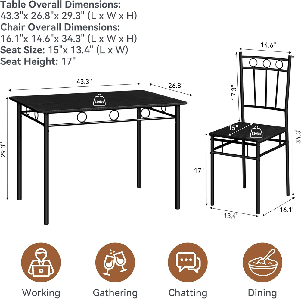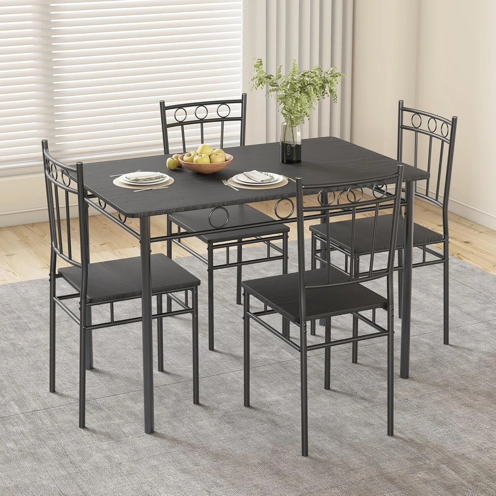Store New Arrivals Add to Favorite View Feedback Contact Dining Table Set for 4, 5-Piece Kitchen Table and Chairs, Rectangular Dining Room Table Set with 4 Chairs, Space-Saving Kitchen Table Set for Small Space,Dinette,Apartment,Pure Black Description Item model number DT-0001-BR Item Weight 53 pounds Item dimensions L x W x H 43.3 x 26.8 x 29.3 inches Color Pure Black Set Name AMICLIBER Dining Table Set for 4 Product Dimensions 43.3 x 26.8 x 29.3 inches Material Metal, Wood Item Weight 53 Pounds Assembly Required Yes Shape Rectangular Manufacturer AMICLIBER Brand AMICLIBER Size 0.6-inch 【Sturdy & Stable】 : The dining table and chairs are supported by metal legs and possess a robust structure. Thick planks and strong metal with a smooth finish ensure sufficient weight to offer you a reliable dining experience. The table has a load-bearing capacity of up to 220 pounds, and each chair can withstand a weight of up to 330 pounds. 【Stylish Dining Table】: The 43.3-inch table top complements various decorative styles. Additionally, the smooth surface and rounded corners of the desktop are effortless to maintain, ensuring that this elegant dining table chair remains functional and beautiful for many years to come. The rustic surface makes it an ideal complement to the living room, kitchen, and dining room. Furthermore, all the mess can be cleaned up with a single wipe, which is convenient. 【Space Saving Design】: Compared with dining chairs with armrests, armless dining chairs provide people with an open feeling. When not in use, the chairs can be neatly stored under the table, liberating valuable space for other activities. The size of these chairs has been meticulously designed so that they can be easily hidden under the table after use, saving precious space. 【Comfort & Safety Prioritized】: The chair's reclining backrest has been ergonomically designed to offer optimal support for your back, providing comfort during prolonged sitting. Besides, every corner of our kitchen table set is rounded, minimizing the risk of injuries in the event of accidental collisions. Moreover, the dining chairs are equipped with non-slip foot pads that enhance stability. 【Perfect for Families】: The dining table for four people consists of a rectangular dining table with dimensions of 43.3 "x 26.8" x 29.3 "(L x W x H) and four chairs with dimensions of 16.1”x 14.6”x 34.3” (L x W x H), which is suitable for small to medium-sized gatherings and family meals at home. Moreover, it can serve as a work table or a game table as per your requirements. Product description ABOUT US We offer the best prices around on high quality products. Our E-store includes media such as books, movies, music and games while offering electronics, toys, sporting apparel, clothing, tools, general home, garden items and more. SHIPPING We are always working hard to ensure your package arrives as soon as possible. Please understand that some factors like weather, high postal traffic, and the performance of shipping companies are outside of our control. For shipping outside of the continental USA, we only use eBay's Global Shipping Program.The item is shipped to KY and then sent to the rest of the world. International customers are responsible for all duties and taxes. Continue to check out in order to calculate costs for shipping the item to your country. Messages regarding eBay's Global Shipping Program MUST be directed at eBay EXCLUSIVELY. RETURNS We offer a 30-Day Return Policy on items which you are not completely satisfied with. You have the option for a full-refund or an exchange of the item. No returns are available on items shipped outside of the USA. PAYMENT We accept PayPal. CONTACT US This page content is yet to come Please ad us to your favorite seller and visit again later Thank You CUSTOMER SATISFACTION We try our very best to make sure every customer is completely satisfied. If there's a problem, message us! We're happy to help. WE ACCEPT Copyright © 2021 AutoDS. | All Rights Reserved