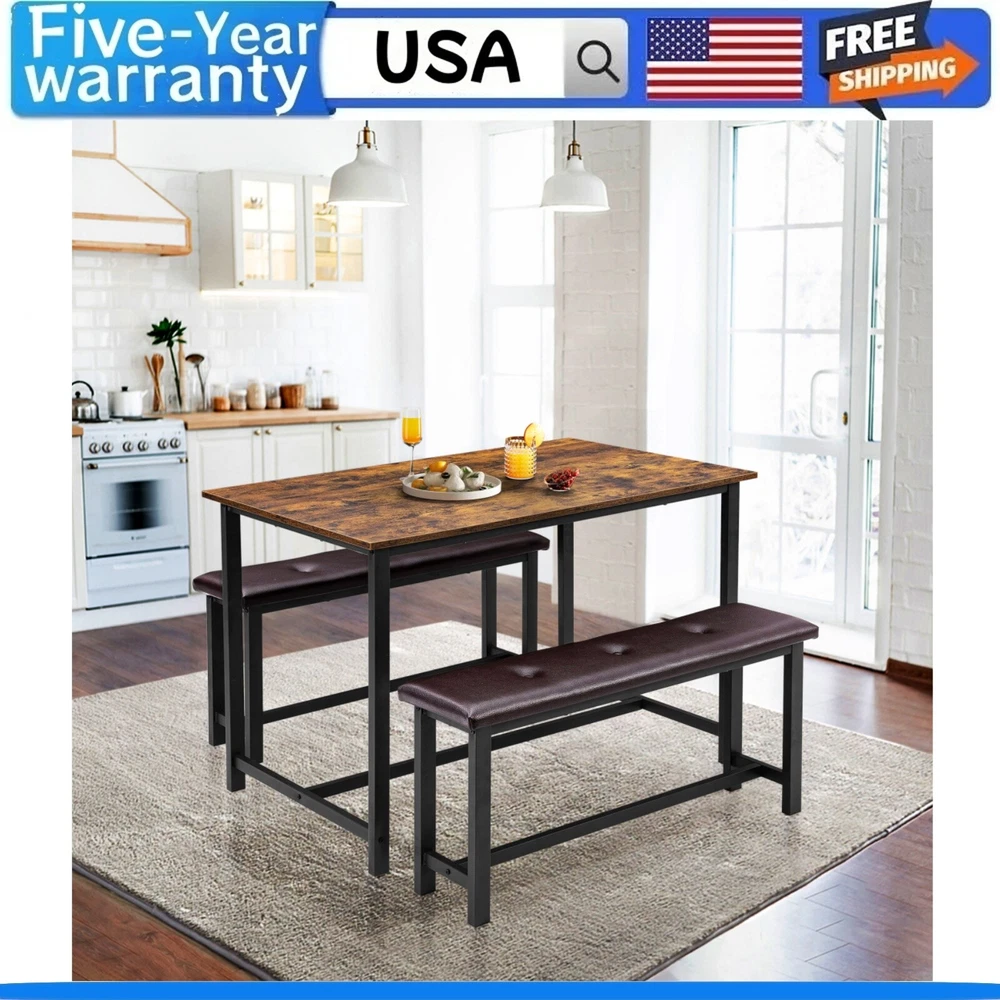 About this item COZY UPHOLSTERED BENCHES: This dining table set of 4 is made of premium MDF board and solid steel, which features a sturdy frame for a long lifespan. The use of metal pipes with a larger diameter makes the kitchen bench more stable and comfortable than other products. The Upgraded Dining Bench seats are padded with thick cushions, keeping you comfortable all dining time. More comfortable than a traditional wooden Bench. PREMIUM & STURDY CONSTRUCTION: This retro gray kitchen table set with a metal frame, which offers a longer service life and more excellent stability. With the premium thickening MDF Board top, the overall durability would be significantly increased. Protective steel plates have been added to the four corners of the desktop, making it more stable to use. The H-shaped frame of the base makes this kitchen bench and table more sturdy and durable. Bench load-bearing reaches 400 lbs. EASY TO MAINTAIN: The surface of the dining table set of 4 is a waterproof and anti-corrosive coating, you can easily wipe soup, sauce, and dust clean, and the surface will not be hurt, and is sturdy for long-term use. SPACE-SAVING DESIGN: 2 kitchen benches can be hidden under the kitchen table to save space and create a tidy atmosphere. It is an excellent solution for small spaces, such as condos, kitchens, studios, or apartments. EASY TO ASSEMBLE: All the assembly hardware and tools come with this dining table set. With illustrated instructions, this table and bench table dining set can be assembled within 40 min without effort. Dimensions: Table Size 44.49” L*27.59” W*29.59” H, Bench Size 38.59” L*10.69” W*18.59” H. Product Description Fancihabor Dining Table Set for 4, Kitchen Table with 2 Upholstered Benches, Rectangular Dining Room Table Set, 3 Piece Kitchen Table Set 1. A beautiful rustic kitchen table set for the living room, dining room, and kitchen, that will fit perfectly into a variety of décor styles.ral strength and durability. 2. A beautiful rustic kitchen table set for the living room, dining room, and kitchen, that will fit perfectly into a variety of décor styles. 3. Sturdy and Durable Frame: Constructed of high-grade MDF board and thickened steel frame and pipe wall, this small kitchen table with 2 benches is long-lasting and you can count on it to be a favorite for years to come. The seat panels of the chair can load over 400 lbs. Additional Steel Pipe, More Durable 2 Cozy Upholstered Seat Large Sturdy Tabletop Specification Color Retro Grey Weight 54.5 LBS Material Metal/MDF Board/Artificial Leather Dimensions Table Size 44.48” L*27.58” W*29.58” H, Bench Size 38.58” L*10.68” W*18.58” H. Max. Load Capacity Table 150 LBS / Bench 400 LBS Package Includes 1 x Dining Table, 2 x Benches, 1 x Instruction, 1 x Accessory Bag Payment Delivery details Terms of sales About us Contact us Payment We accept payment either via PayPal or any of the following credit cards; Visa, MasterCard, Discover, and American Express. Wishing you a happy life! Delivery details We will provide you with the tracking number on the same day or the next day, and transport your package through UPS, DHL, FedEx and other courier methods. If you have any questions, please feel free to contact me and I will do my best to help you solve the problem. Wishing you a happy life! Terms of sales We offer a one month free return and exchange service, and you don't have to bear any losses. We will provide multiple solutions for you to choose from. If you have any questions, please feel free to contact me and I will do my best to help you solve them. We offer a two-year warranty period. If you have any quality issues with the product you purchased within two years, please feel free to contact me. I will provide you with a free replacement service. If you have any questions, please feel free to contact me. I will do my best to help you solve the problem. Wishing you a happy life! About us We are committed to becoming the best eBay seller, with high-quality suppliers, providing the most sincere service, including pre-sales and after-sales service, to give you a satisfactory shopping experience. If you have any questions, please feel free to contact me, and I will do my best to help you solve the problem. Wishing you a happy life! Contact us If you encounter any problems, please contact me by email at the first time, I will provide you with a solution as fast as possible so that I can give you a satisfactory shopping experience, wish you a happy life! Brand Fancihabor Number of Items in Set 3 Set Includes Dining Table, Chairs Room Dining Room, Kitchen, Living Room Seating Capacity 4 Style Retro Item Weight 66.6 pounds Manufacturer Warranty 5 Years Item dimensions L x W x H 44.49 x 27.59 x 29.59 inches Material Engineered Wood Mounting Freestanding