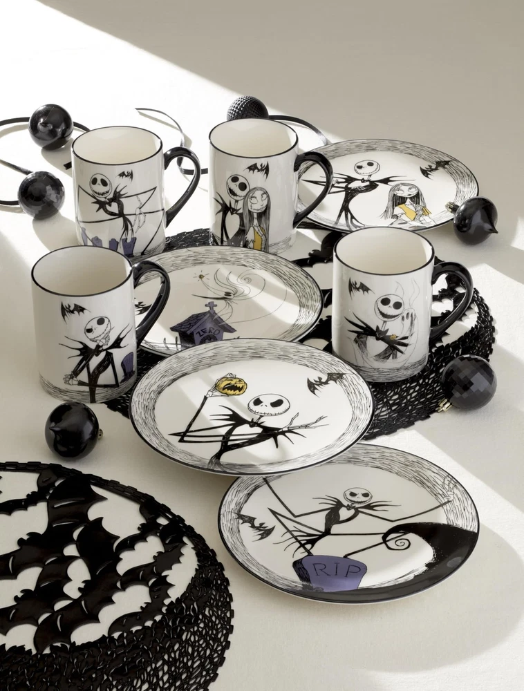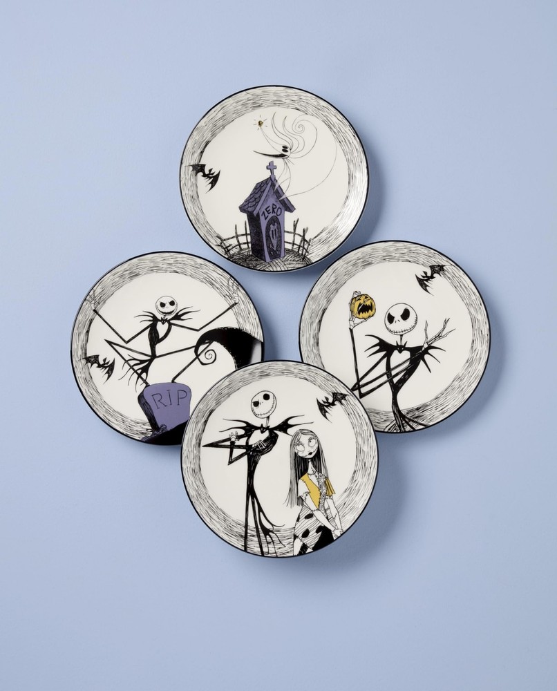Dinnerware Set, Nightmare Before Christmas Accent Plates Set For 4, Jack Skel...