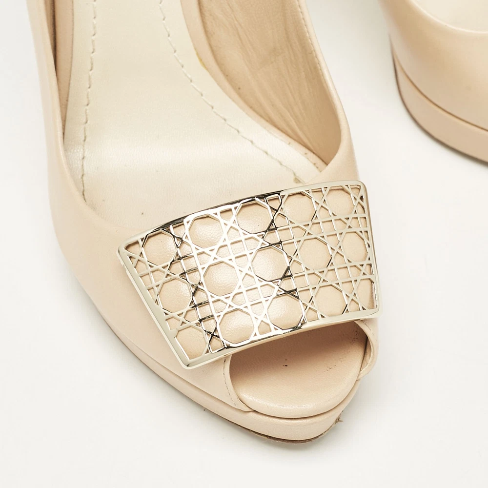 Make a chic style statement with these designer pumps. They showcase sturdy heels and durable soles, perfect for your fashionable outingsCertified by The Luxury Closet - This item has gone through a detailed authentication process overseen by our experts. We offer a lifetime guarantee of authenticity on all our items. Import duties, taxes and charges are not included in the item price. These charges are the buyers responsibility. Please check with your country’s customs office to determine what these additional cost will be prior to buying. Our eBay Store About Us Contact Us Add to Favorite Sellers Dior Beige Leather Cannage Plaque Peep Toe Platform Pumps Size 38 $225.5 Make a chic style statement with these designer pumps. They showcase sturdy heels and durable soles, perfect for your fashionable outings Product Details Brand Color Beige Dimensions Material Leather Size 38 Outsole Width 7.5 cm Outsole Length 21.5 cm Heel Height 12 cm Includes Original Dustbag, Original Box Certified by The Luxury Closet This item has gone through a detailed authentication process overseen by our experts. We offer a lifetime guarantee of authenticity on all our items. How We Check The in-house team of experts at The Luxury Closet is highly trained to verify the authenticity and the condition of the luxury products. They ensure that only 100% authentic items are put on sale.The evaluation process is unique with its own mix of assessment criteria and differs according to the category. Each item is evaluated based on the following combination of hallmarks, hardware, stitching, symmetry, material, craftsmanship, stamping, codes, hologram stickers, and packaging. Our authenticators also check if the items have been modified or amended (e.g., aftermarket diamonds, replaced batteries, repaired bags, etc.) International Buyers Import duties, taxes and charges are not included in the item price. These charges are the buyers responsibility. Please check with your country’s customs office to determine what these additional cost will be prior to buying.