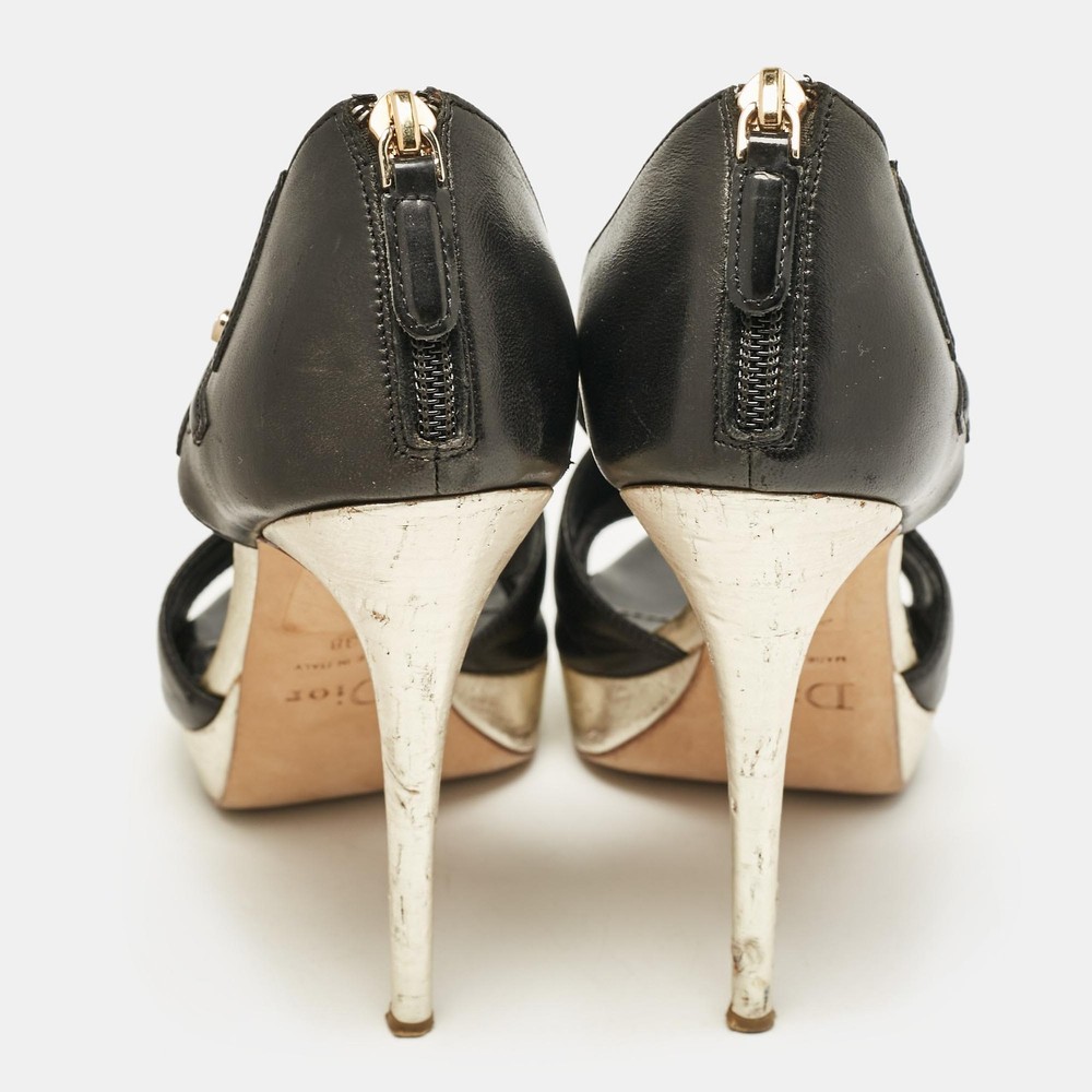 Experience the refined elegance of Dior with these striking leather platform pumps. Crafted in Italy, these shoes showcase a luxurious black exterior embellished with sophisticated gold accents and an exquisite bow design. The cut out details add a contemporary touch, while the zip up closure ensures a seamless fit.Certified by The Luxury Closet - This item has gone through a detailed authentication process overseen by our experts. We offer a lifetime guarantee of authenticity on all our items. Import duties, taxes and charges are not included in the item price. These charges are the buyers responsibility. Please check with your country’s customs office to determine what these additional cost will be prior to buying. Our eBay Store About Us Contact Us Add to Favorite Sellers Dior Black/Gold Leather Bow Cut Out Platform Pumps Size 38 $125.4 Experience the refined elegance of Dior with these striking leather platform pumps. Crafted in Italy, these shoes showcase a luxurious black exterior embellished with sophisticated gold accents and an exquisite bow design. The cut out details add a contemporary touch, while the zip up closure ensures a seamless fit. Product Details Brand Color Black Dimensions Material Leather Size 38 Outsole Width 8 cm Outsole Length 20 cm Heel Height 11 cm Includes The Luxury Closet Packaging Certified by The Luxury Closet This item has gone through a detailed authentication process overseen by our experts. We offer a lifetime guarantee of authenticity on all our items. How We Check The in-house team of experts at The Luxury Closet is highly trained to verify the authenticity and the condition of the luxury products. They ensure that only 100% authentic items are put on sale.The evaluation process is unique with its own mix of assessment criteria and differs according to the category. Each item is evaluated based on the following combination of hallmarks, hardware, stitching, symmetry, material, craftsmanship, stamping, codes, hologram stickers, and packaging. Our authenticators also check if the items have been modified or amended (e.g., aftermarket diamonds, replaced batteries, repaired bags, etc.) International Buyers Import duties, taxes and charges are not included in the item price. These charges are the buyers responsibility. Please check with your country’s customs office to determine what these additional cost will be prior to buying.