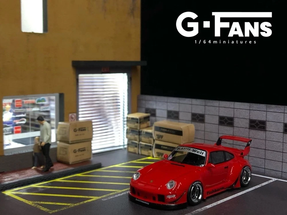 Description: Building scene model with lights Name: 1/64 car model shop building scene model Feature: ◇Indoor and all signboards are illuminated ◇Crystal shutter door can be moved upa and down ◇Wall HD spray painting ◇Three-dimensional indoor display cabinet, display stand, car model ◇All handmade, the manufacturing process is time-consuming ◇The road can be freely spliced and placed as needed ◇The building can be separated from the parking lot and road ◇10 standard parking spaces in the parking lot ◇The signboard is in the form of stickers, providing four styles, and you can also DIY by yourself ◇Provide box template, which can be cut, pasted and placed ◇Can be spliced with all previous buildings to form a city ◇LED light powered by USB interface with power switch Specification: *Product size: length 285mm width 300mm height 135mm *Building size: length 143mm width 129mm height 135mm *Parking size: length 245mm width 190mm *Package size: length 295mm width 310mm height 20mm *Product material: PVC, acrylic *The product needs to be installed with a simple buckle, no glue, with installation instructions Package included: 1 Set Diorama Parking Lot Model(Not include any Model Car & Figures)
