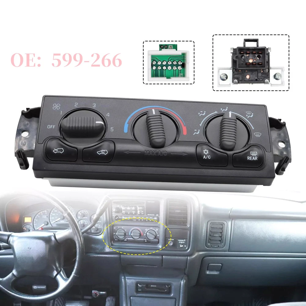 Product Description AC Climate Control Module Panel For Chevy Silverado For GMC Sierra 1500 599-266 Feature: 100% Brand New and High Quality Direct replacement, Easy to install Specification: Name: Climate Control Module Color: Black Condition: 100% Brand New Fitment Type: Direct Replacement Fitment: 2000 For Chevy Tahoe 2002 For Chevy Avalanche 1500 2002 For Chevy Avalanche 2500 1999 For Chevy Silverado 1999-2002 For Chevy Silverado 1500 2001-2002 For Chevy Silverado 1500 HD 1999-2002 For Chevy Silverado 2500 2001-2002 For Chevy Silverado 2500 HD 2001-2002 For Chevy Silverado 3500 2000-2002 For Chevy Suburban 1500 2000-2002 For Chevy Suburban 2500 2000 For GMC Yukon 2000-2002 For GMC Yukon XL 1500 2000-2002 For GMC Yukon XL 2500 1999-2002 For GMC Sierra 1500 2001-2002 For GMC Sierra 1500 HD 1999-2002 For GMC Sierra 2500 2001-2002 For GMC Sierra 2500 HD 2001-2002 For GMC Sierra 3500 Part Number: 599-266, 19244873, 15054697, 15753264, 19244873, 9361355 Package included: 1PC Climate Control Module If you have any doubts or uncertainty about this item, contact us with no hesitation, we are always here and will solve your problems. Thanks and wish you a nice day! About Us We dedicated to provide excellent products and services for all customers on ebay. hope we all can have a nice experiences on eBay. Payment We accept all verified payment through PAYPAL payment. Shipping Usually, Item will be shipped within 1-2 working day after full payment is received. Normally, you will receive the item in 5-7 days. Please contact us if you don’t receive the items after 10 working days after the payment If you have any questions about shipping, please feel free to contact us. Returns Always believe we can solve problems by communication if it comes to any problems about products or any others. If it comes to a return, the products must be intact and as original when you received, and should be within 30 days after you received it. Contact Us Work time: 9:00 AM to 18:00 PM Beijing Time You can contact us at anytime you want, we will reply all messages at the first time. powered by