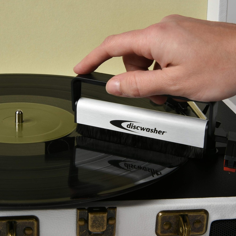 Conductive, premium quality carbon fiber bristles gently remove static, dust, dirt and fingerprints from your vinyl records - strengthening playback and performance, removing audio snap, crackles and pops and improving the longevity of your vinyl records, turntable and stylus Sturdy, aluminum-covered brush grip and easy-to-use design provides a simple solution for maintaining clean vinyl records To clean the brush, simply rotate the silver brush grip in and out of the black handle a few times to remove dust and dirt from bristles Protect carbon fiber bristles from damage while not in use by rotating the brush head toward the handle for convenient storage