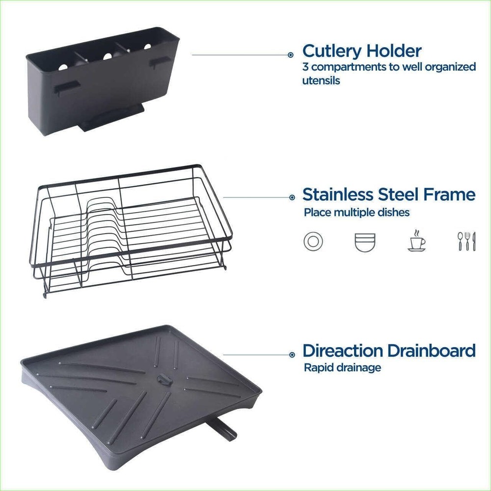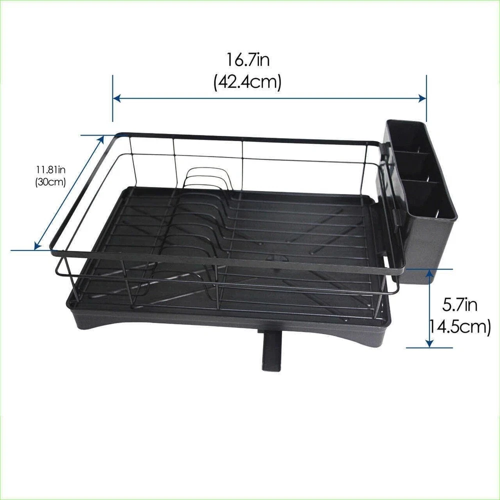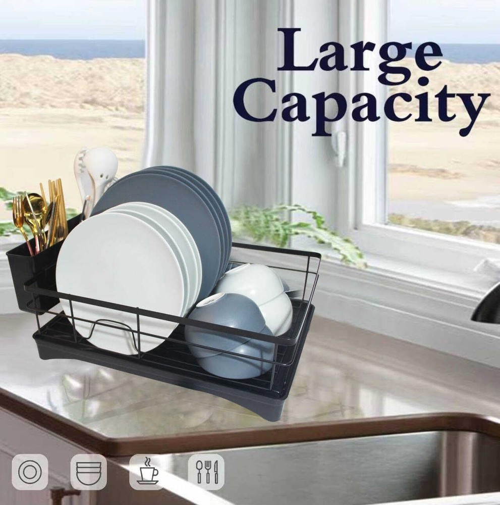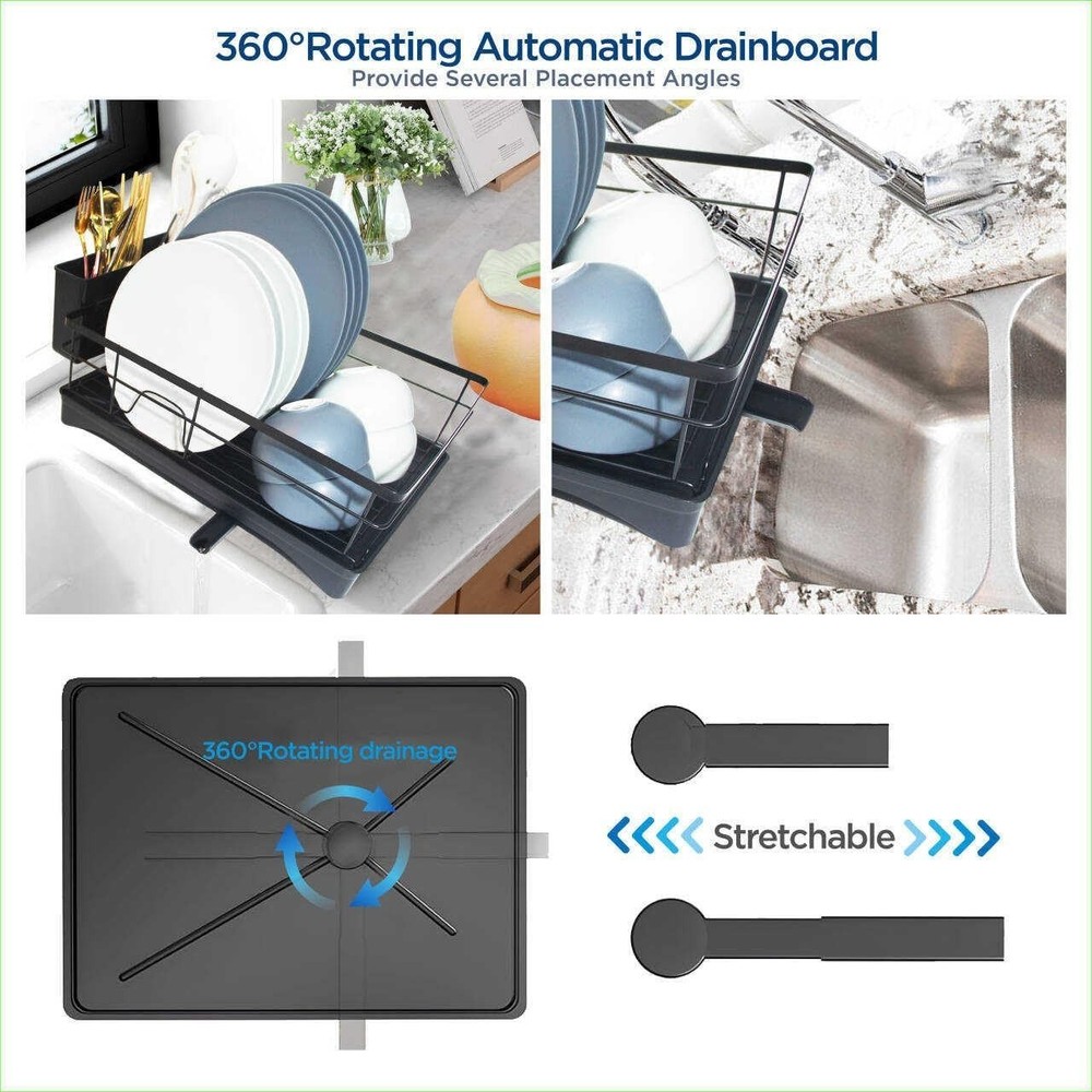 β€οΈππππππ ππππππππππππ:This drying rack for kitchen counter is made of high-quality metal iron covered with a rust-resistant coating to protect the dish racks from rust.The sturdy frame also provides better protection for your dishes. β€οΈππ π ππππππ ππππππππ ππππππ:Under this dish rack is a 360Β°rotatable drainboard with a piston.Upgraded treatment this drainboard with 4 grooves drains more quickly,and no longer worry about water accumulation and water leakage.The dish drying rack makes countertop storage more convenient and tidy,keeping your dishes away from water droplets! β€οΈπππππ ππππππππ:Our dish racks measures 16.9"D x 12.9"W x 5.9"H(43 D x 33W x 15 H cm),store 12 plates,4 bowls,6 cups or glasses and lots of tableware,the dish drainers for kitchen counter is large enough for a family of 4 to use daily. β€οΈππππ ππππ πππππ:The upgraded design saves you 50% of the storage space and 100% of the storage time in the kitchen.You will use these dish racks at least 4 times a day or more.To be with it,space for cooking and storage countertop will be greatly