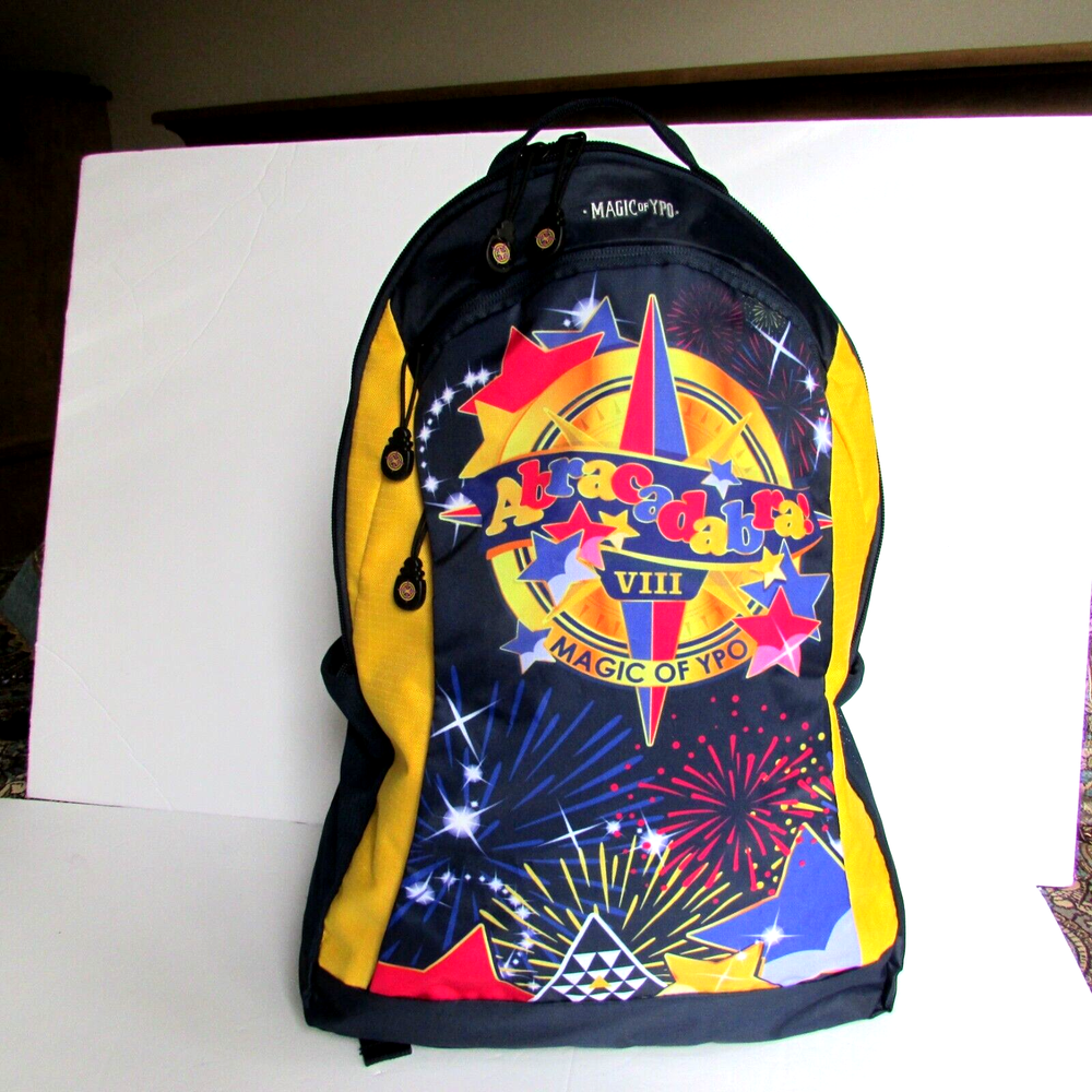YPO is a private corporate event at Walt Disney World for YPO ( Young Presidents' Organization ). The special Disney event is titled Abracadabra! THIS IS A NEVER USED LARGE BACKPACK THAT IS CALLED THE MAGIC OF YPO . LIGHT WEIGHT DURABLE NYLON 2 WAY TOP ZIP AROUND CLOSURE ADJUSTABLE STRAPS LARGE ROOMY MAIN ENTRY EXTERIOR FRONT ZIP AROUND ADDITIONAL COMPARTMENT EXTERIOR FRONT HIDDEN VERTICAL ZIP COMPARTMENT TOP HANDLE SIDE MESH SLIP POCKETS APPROX. 12" WIDE 17" HIGH 4" DEEP NEW WITHOUT TAG SMOKE AND PET FREE HOME- NEW