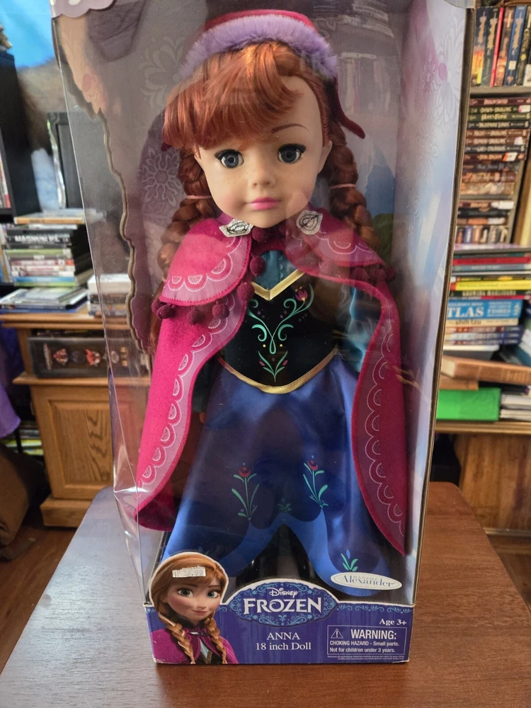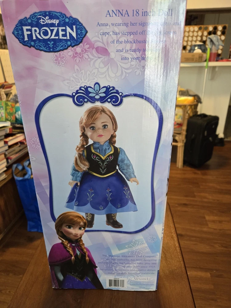 This beautiful 18-inch porcelain doll is a must-have for any Frozen or Disney fan. With her straight hair and stunning blue eyes, this girl doll is sure to capture your heart. The doll comes in its original packaging, unopened and ready for display.Featuring Anna from the beloved Frozen franchise, this doll is an original, licensed reproduction from Disney. It is perfect for collectors or anyone who wants to add a touch of fantasy to their collection. The doll is made in China and is part of the Disney product line. Don't miss out on the chance to own this amazing piece.
