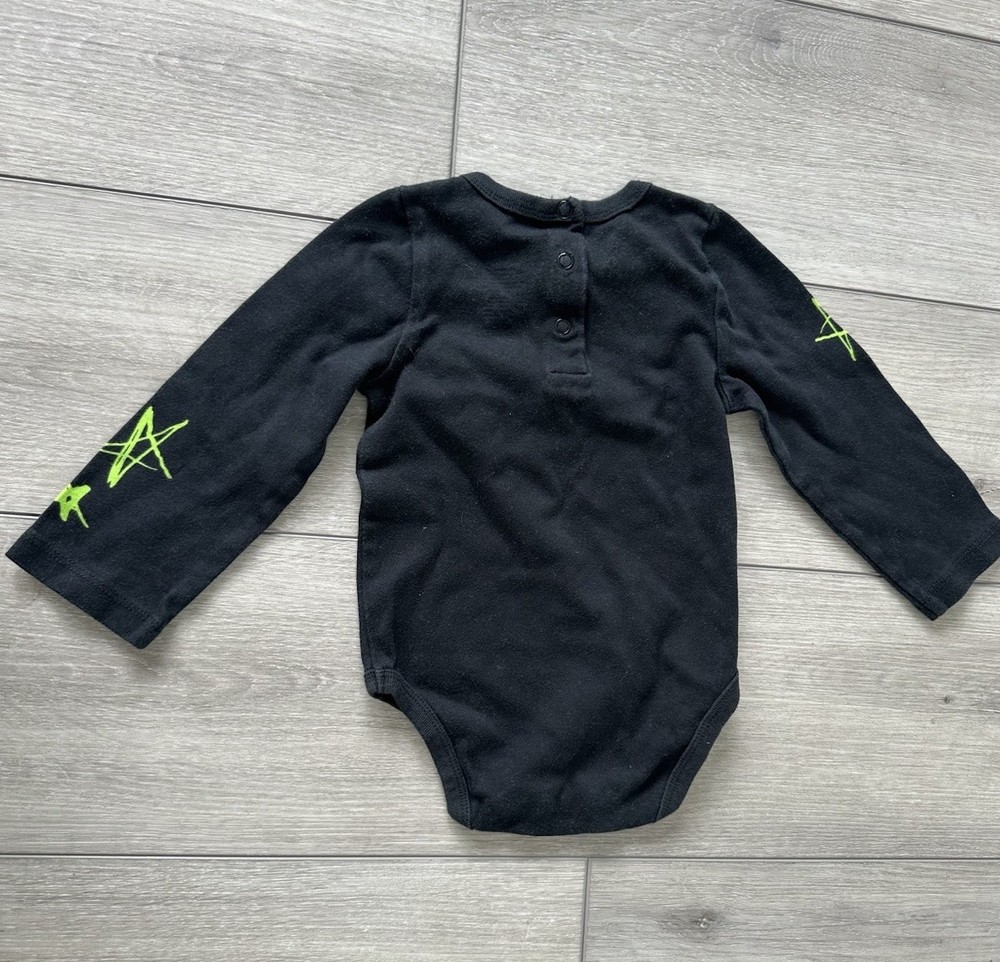Show off your love for Tim Burton's classic movie with this adorable Disney Baby long sleeve bodysuit featuring Zero from Nightmare Before Christmas. The black onesie with snap closure is perfect for your little one in size 18-24 months. The unisex design is great for both baby boys and girls and the long sleeve style is perfect for any season. The Disney brand ensures high quality and your little one will love the cute character design. This one-piece is a must-have for any little Disney fan with its fun Christmas theme. Don't miss out on this item, perfect for a gift or for your own little one.