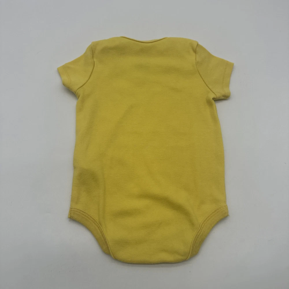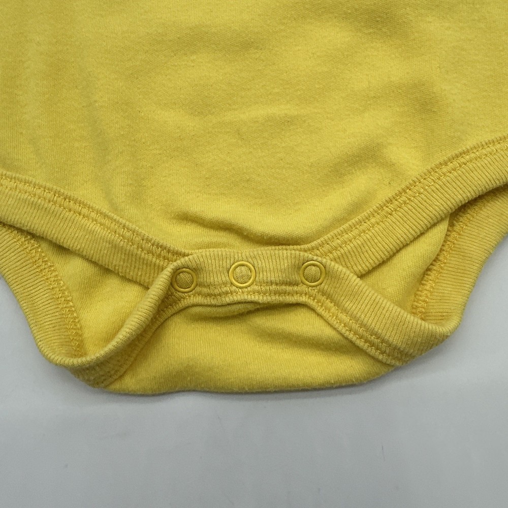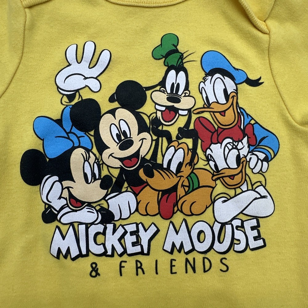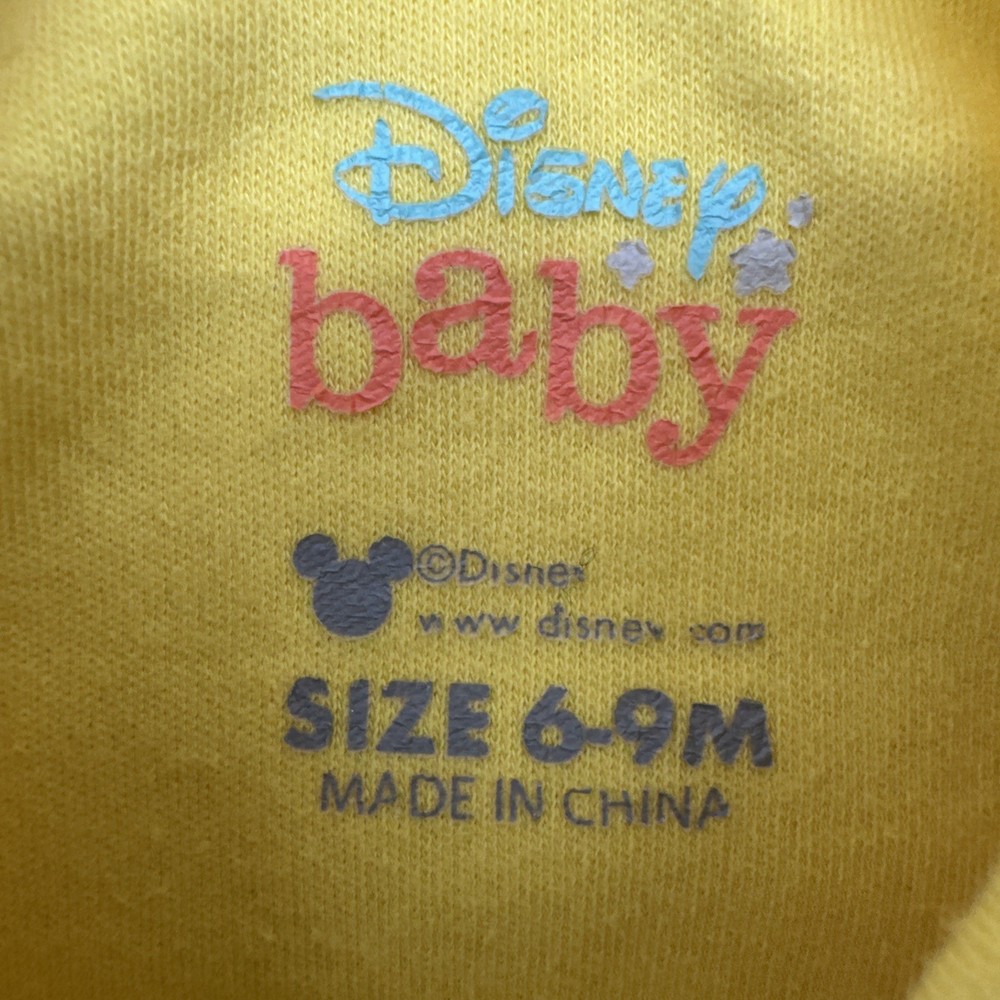 The Disney Baby One Piece Toddler Boys Size 6-9M in Yellow with Graphic Print Logo is a comfortable and stylish outfit suitable for a variety of occasions, such as travel, parties, or casual wear. Made from a blend of polyester and cotton, this one-piece features short sleeves, a crew neck, and snap closures for easy dressing. The cartoon and TV character theme, along with the designer look, adds charm to this classic piece, perfect for boys who love Disney. Ideal for summer, fall, and spring seasons, this bodysuit is a must-have for any toddler boy's wardrobe. Check pictures for flaws and measurements