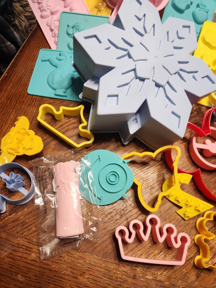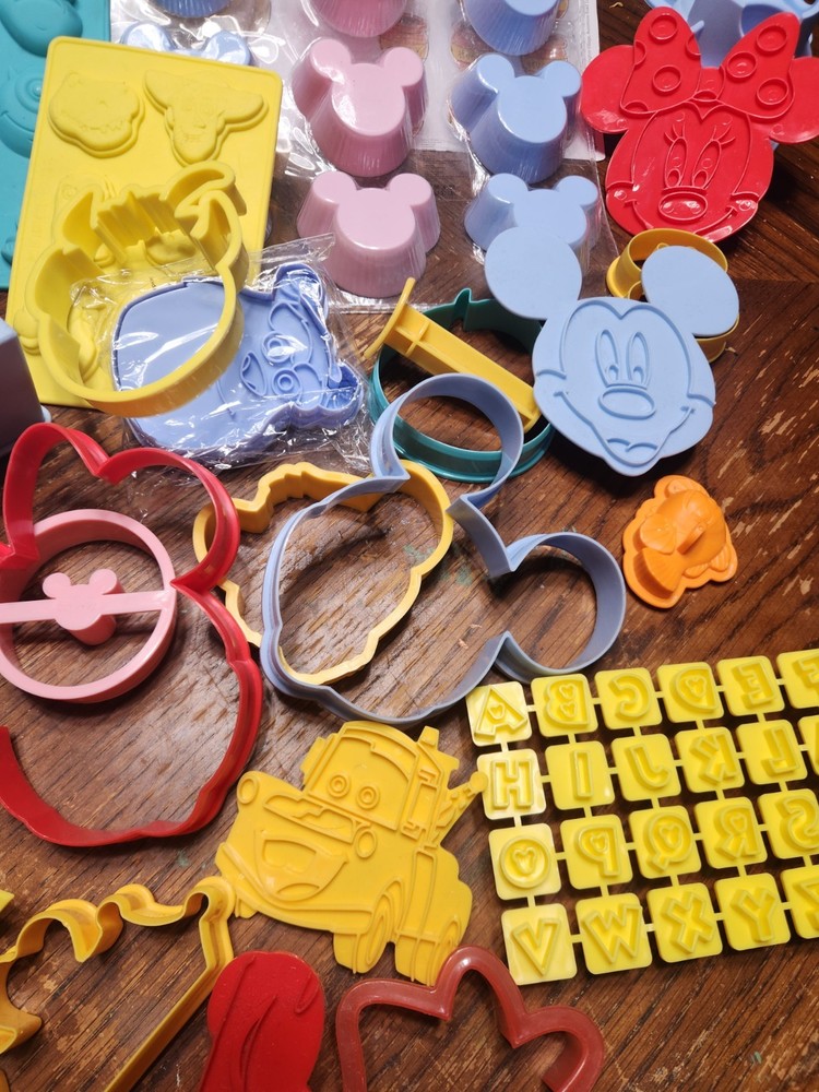 Set includes two binders that has Disney Cakes and Sweets issues 1-25 in two binders. Also included are cutters, molds, stencils and more of Disney Characters. Most if this stuff is brand new and never used, just been in storage for awhile, may have a little dust. what you see in pics is what you get!!!!