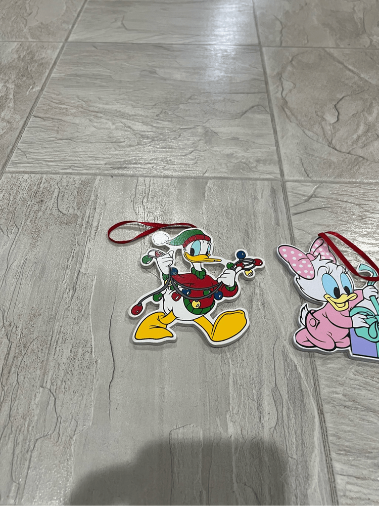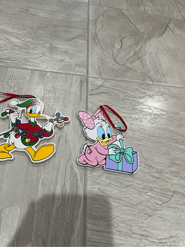 Disney Donald Duck and baby Daisy Duck Christmas ornaments. Include both. Item is preowned and may have small flaws that I missed. Color may very in person as my phone changes the color sometimes. Offers always welcome. Check out our other listings. All items are cross posted.