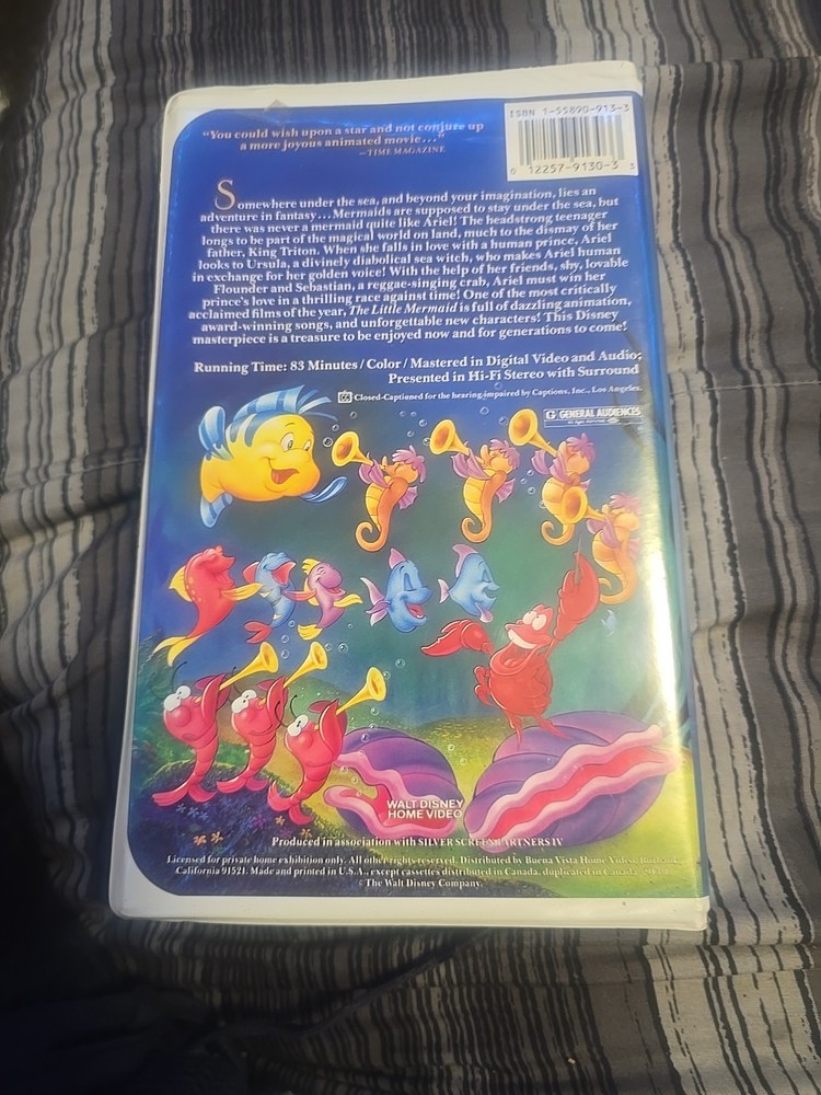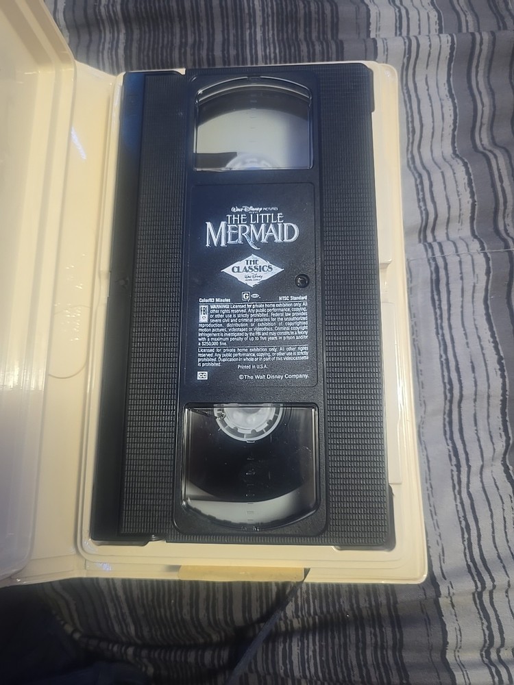 This rare Black Diamond VHS of The Little Mermaid is a must-have for Disney collectors! The controversial banned cover art makes it a unique piece of animation history. The tape plays perfectly, bringing back nostalgic childhood memories with its classic songs and beautiful animation. A true gem for any fan of vintage Disney magic.