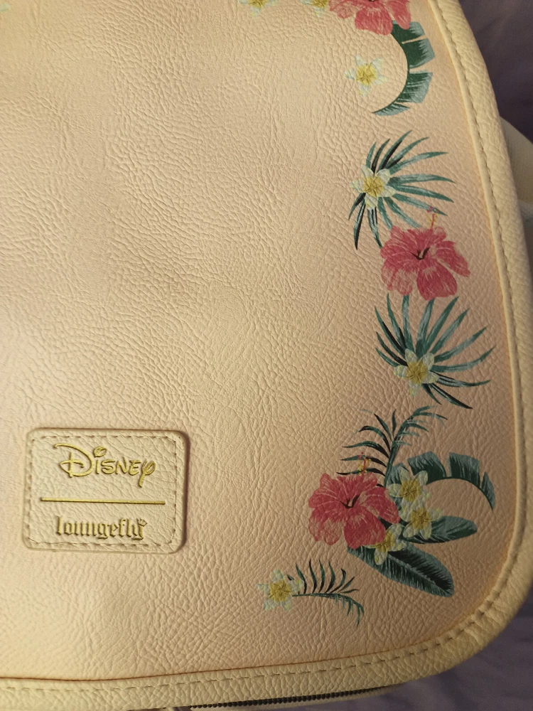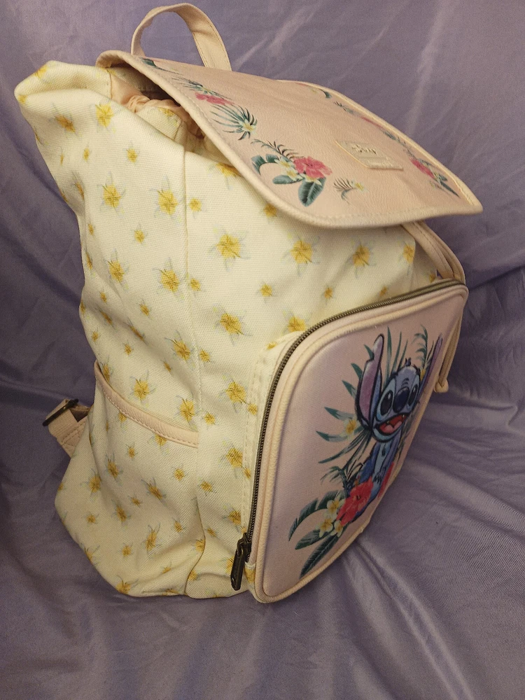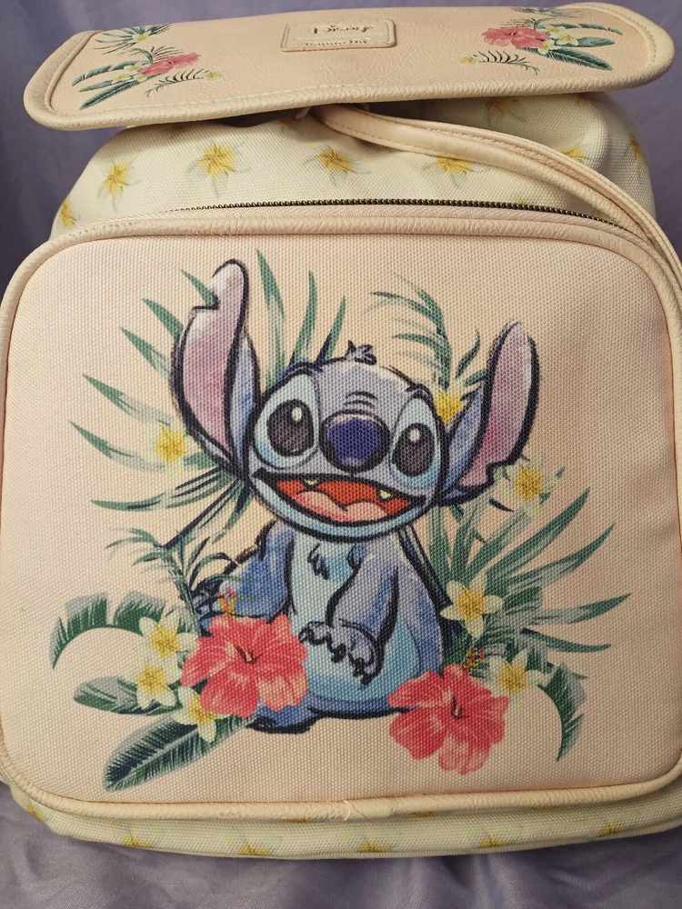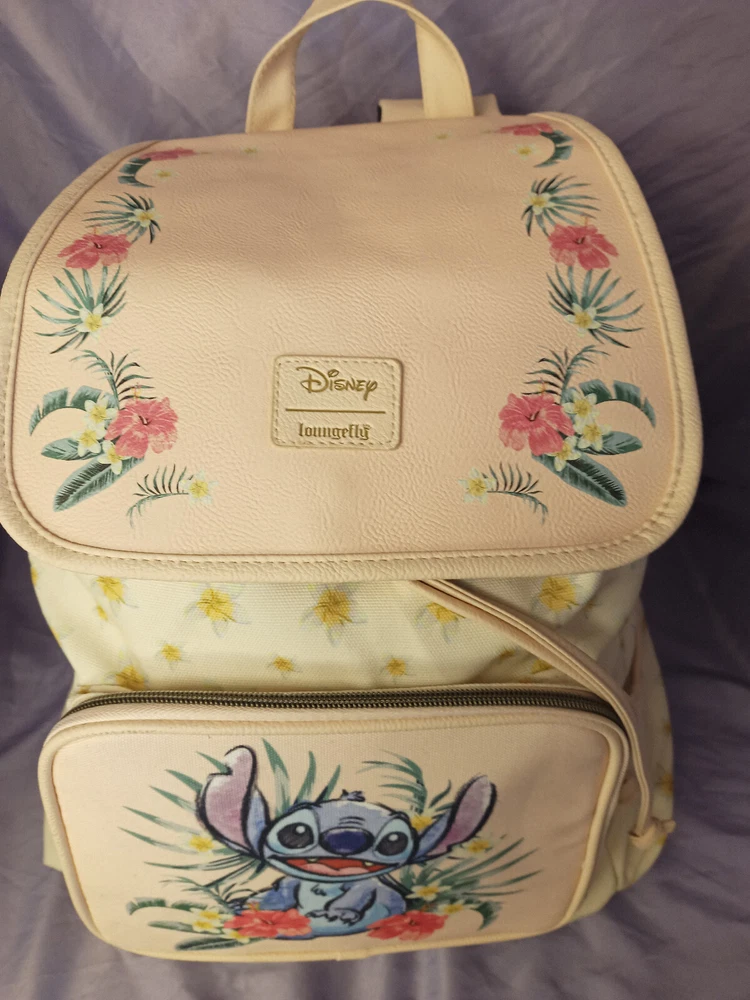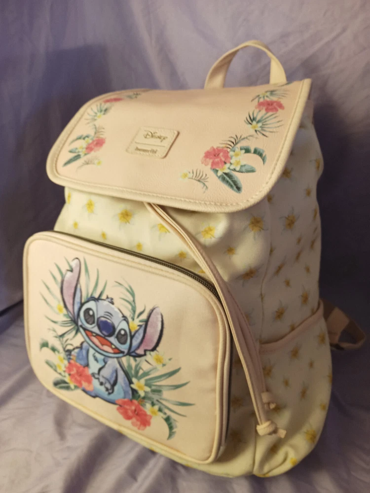 This Disney Loungefly backpack features a beautiful pink floral design with Stitch. It is a perfect addition to any Disney fan's collection. The backpack is large in size and made by the trusted brand Loungefly. The bag is ideal for carrying everyday essentials and is perfect for Disney enthusiasts who want to show off their love for the franchise. The backpack falls under the category of Other Disney Bags & Cases, Bags, Cases & Wallets, Contemporary (1968-Now), Disneyana, and Collectibles. Get your hands on this stylish backpack today! This lovely backpack is clean and appears to have no damage of any kind.