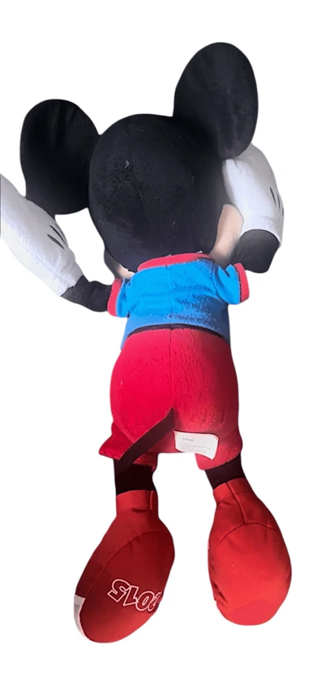 This is a 2015 Disney Mickey Mouse large plush stuffed doll measuring 22 inches. The doll is designed in a multicolor theme and made of plush material, featuring Mickey Mouse as the character. It is a unisex item suitable for both boys and girls who are fans of Disney and Mickey Mouse. The exterior color is also multicolor, adding to the vibrant and playful appearance of the doll. Perfect for cuddling or as a collectible for Disney enthusiasts. • Size 21” • Flaws: There are a few dirty marks, but they can be added to wash •All measurements are laid flat and approximate: • Please review the size and pictures closely before purchasing. • NO RETURNS Product color may vary slightly due to photographic lighting sources or your monitor settings! ***Item: K4 All items are loaded with clear, detailed pictures, pre-checked, firmly well packed, bagged or covered with foam/bubble wrap, and sealed with extra taping. Images and recorded support items with a video before packaging and after for your security protection and mine! Kids/Toys: Accessories, Accessorizing, action, action battle, action figures, arms, baby, baby hair, back pack, bag, Barbie, Battle, bending, blocks, books, bottle, bow, bowl, boy, bricks, brush, building, built, character, classic, collect, collection, colors, colorful, clothes, cooking, craft, create, dance, dangerous, decorate, decorative, diapers, diaper bag, Disney, doll, dolled clothes, companion, drawing, dress, dress up, epic, evil, eyes, eyelashes, fisher-price, fun, fuzzy, girl, gift, glisten, glitter, glow, guitar, gun, hair, hair bow, hairstyles, handcrafting, handpainted, headphones, headset, heroes, kids, leggings, Lego, legs, lights, light up, magic, mermaid, microphone, mini, minifigures, money, music, necklace, ninja, outfit, owl, paint, patch, play set, play songs, play time, plush, plush doll, pom poms, pose, poseable, Power, powerful, present, pretend, prince, princess, rock, rock out, roller skate, rotating, sequin, series, shimmering, shining lights, shoes, sing, sing along, skates, sketch, skirt, shoes, skateboard, skip, soft, stage, staging set, spin, stand, Star Wars, stroller, sword, Temple, toys, treasures, trending, unisex, waistband, weapon