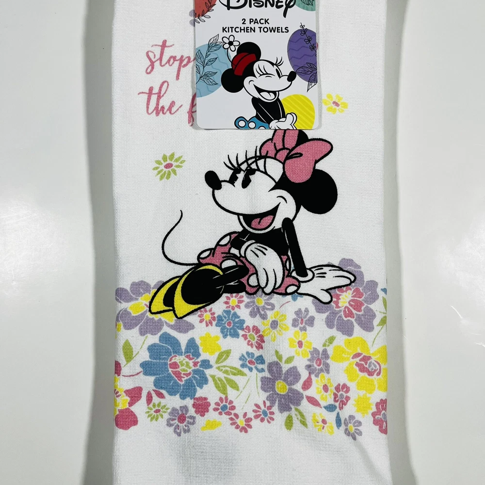 Disney Mickey Minnie Mouse 2 Pack Hand Kitchen Towels Stop & Smell The Flowers