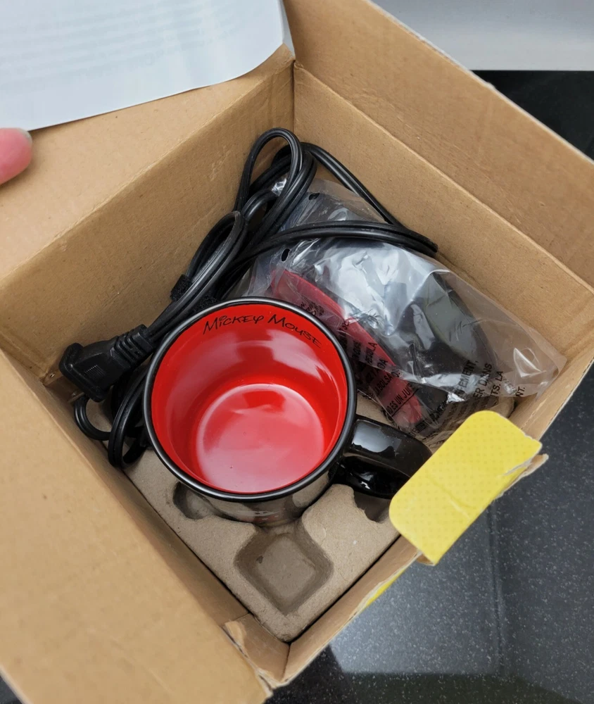 Disney Mickey Mouse 10 Ounce Ceramic Mug & Warmer ~ See Pic's ~ New Open Box. Box has been opened, contents unused. Box has some damage to it, please see photos. I will be adding packaging to the inside of the box to keep mug from moving. Shipping USPS