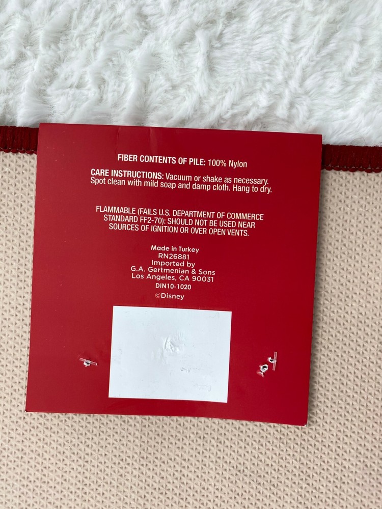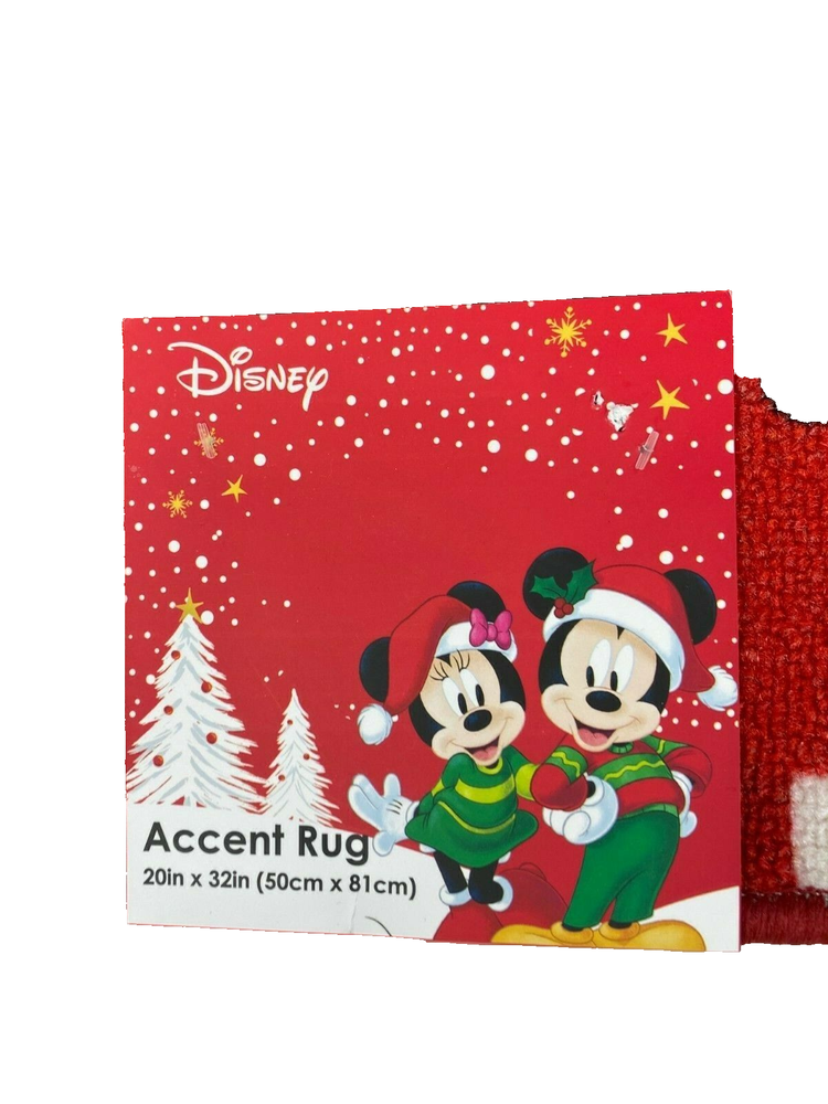 Please read the full description and View pictures before purchase: Disney Mickey Mouse Christmas Accent Rug Kitchen Bathroom Entry Red 20" x 32"