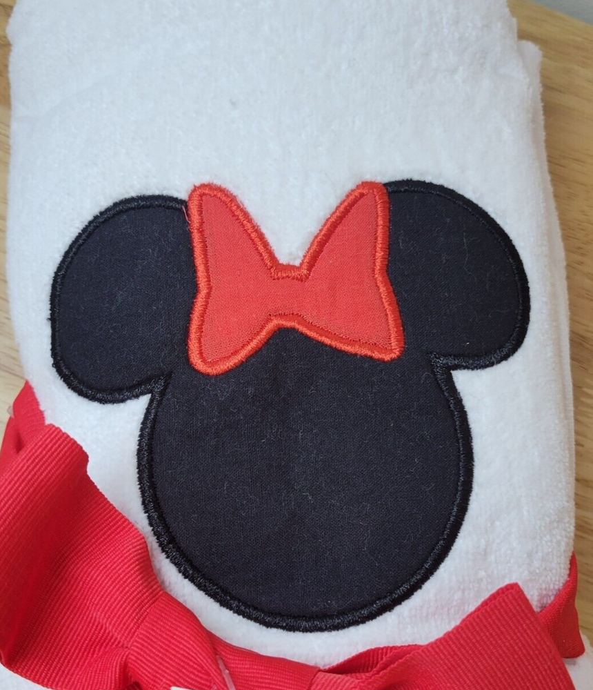 Disney Minnie Mouse Head Hand Towels 2 Pack White with Red Trim
