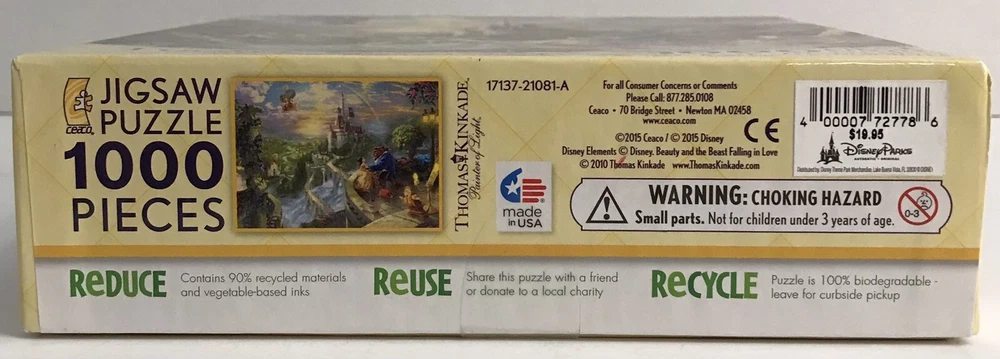 UPC:400007727786Color:Multi-ColorCharacter Family:DisneyTitle:Beauty & the Beast Falling in LoveAge Level:12-16 Years, 17 Years & UpCountry/Region of Manufacture:United StatesTheme:Disneygtin13:400007727786Number of Pieces:1000 PiecesArtist:Thomas KinkadeBrand:CeacoSize:27" x 20"Year:2013
