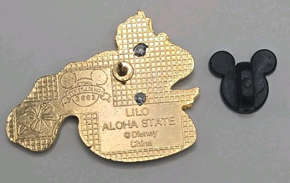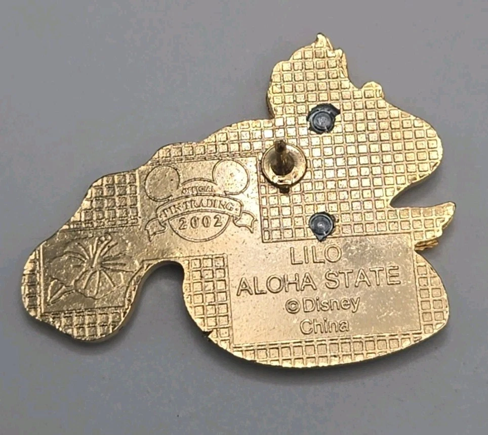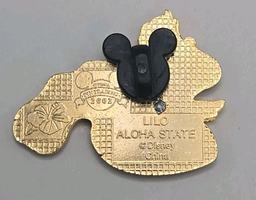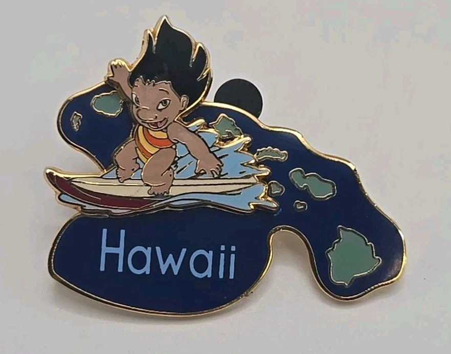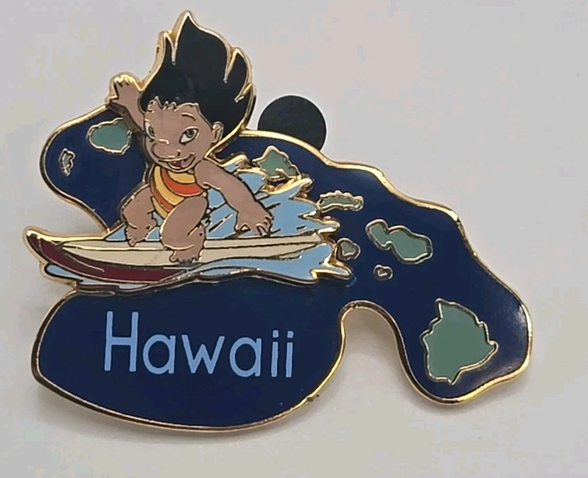 This Disney Pin is a must-have for fans of Lilo & Stitch! It features Lilo, the beloved character from the movie, surfing. This is part of the Disney state series pins featuring the state of Hawaii. This pin is a part of the Disney Trading Pin franchise and was released in 2002. It's the perfect addition to any Disneyana collection, especially for those who love collecting pins and patches. Don't miss out on the chance to own this adorable Disney Pin! Pin has a knick in the gold color outline at the bottom near the last I in Hawaii. See photos for details and sizing as they are part of my description. Message me with any questions you may have. Thank you,and please take a look at my other items . V-29