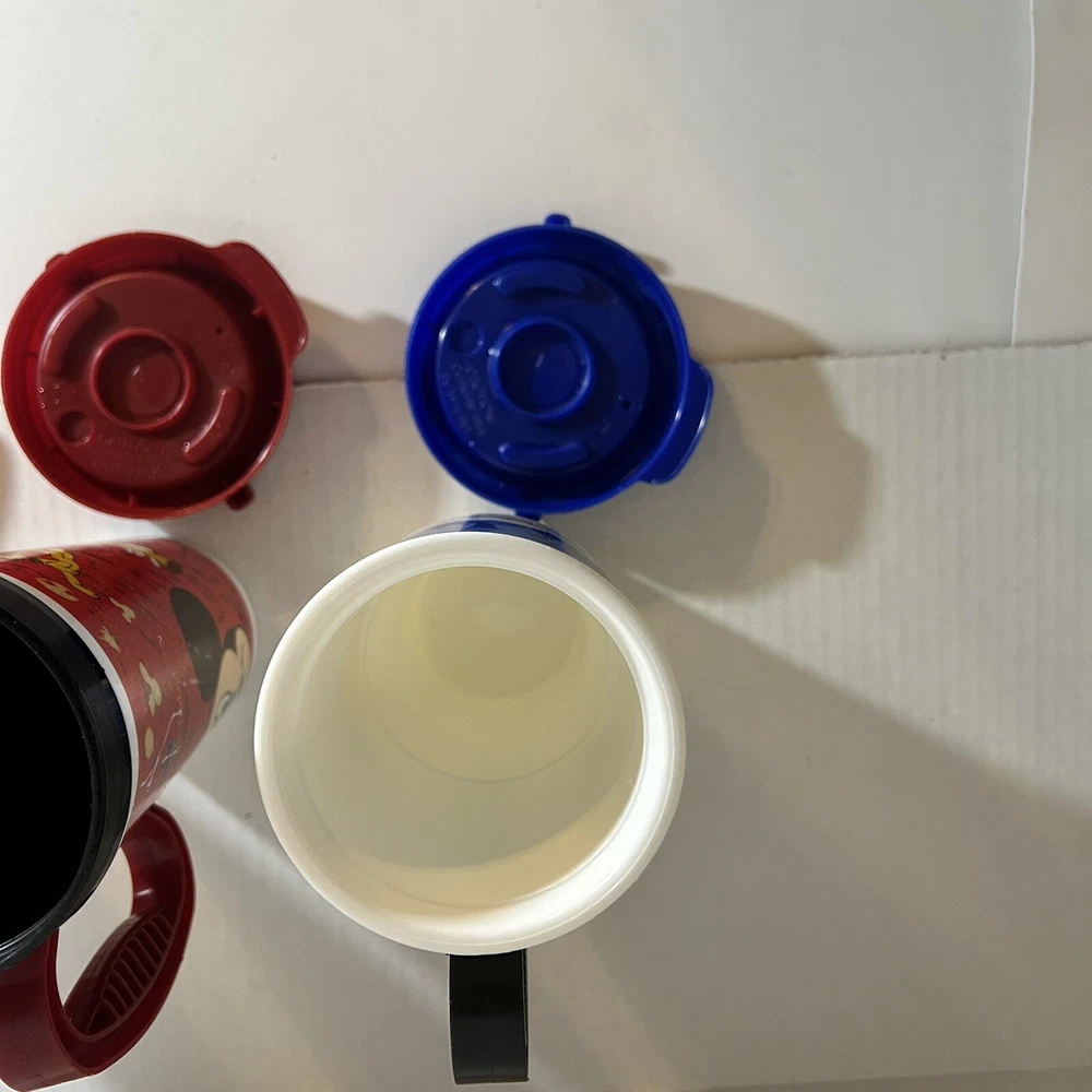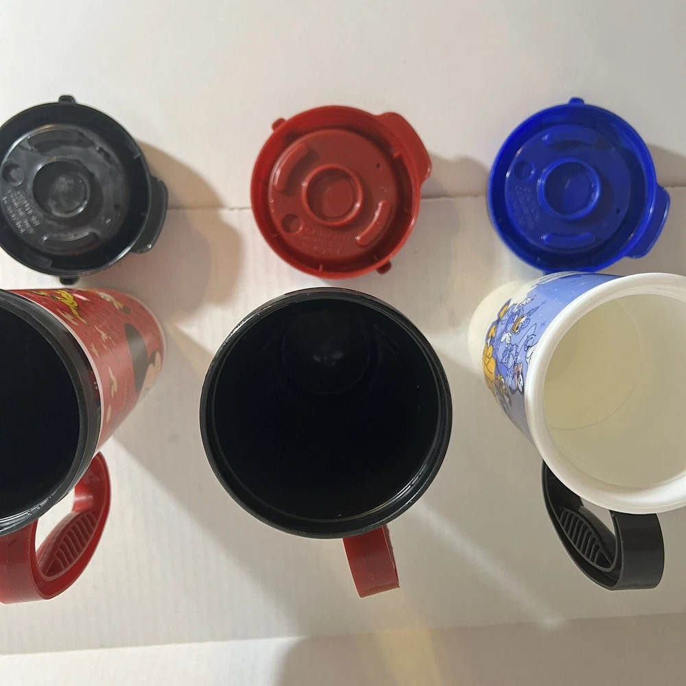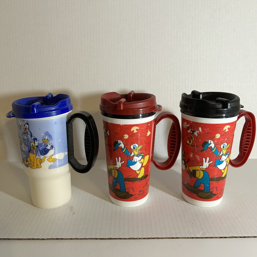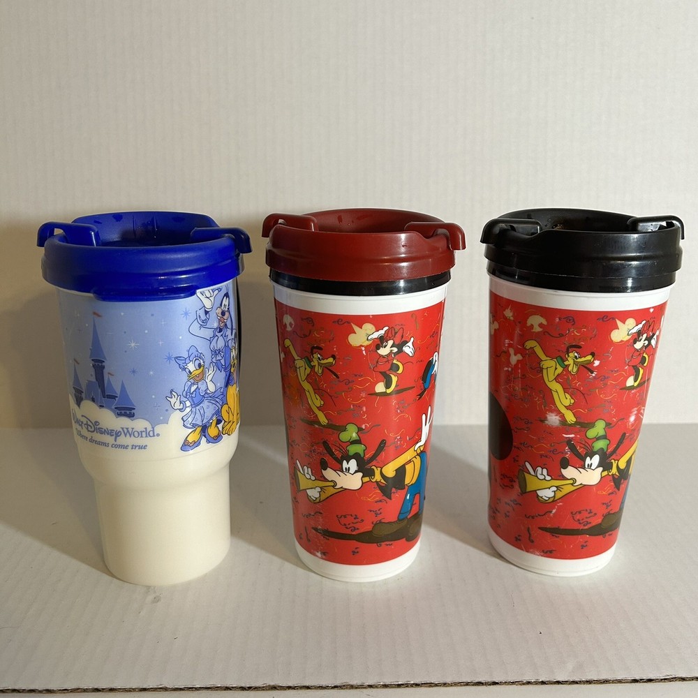 Disney Park refillable Coca Cola Plastic Cups are in good condition, with some wear from previous use: scratched plastic. Please see Photos for Condition of Items. This lot includes three Disney Parks refillable Coca Cola plastic cups with lids from 2007-2009. The cups feature the beloved character Mickey Mouse and are perfect for any Disney fan or collector. Made of durable glass and with a unique design, these cups are a must-have for any Disneyana collection. The cups are from the Contemporary (1968-Now) era and are an authentic piece of Disney history. Don't miss out on the chance to add these rare collectibles to your collection!