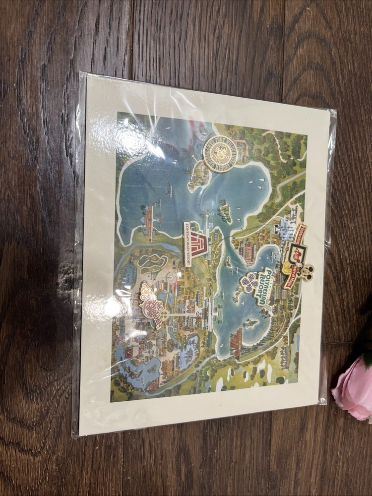The 5 Pin/map Set is a limited edition Cast Member Exclusive Mickey Mouse set released for Disney Park's 40 Years of Magic anniversary. This set includes a Disney World Bay Lake Area map and features the iconic character Mickey Mouse. As a franchise collectible from 2011, this set is a must-have for Disney enthusiasts and collectors alike. Celebrating one of the most beloved characters in Disney history, this set is a special addition to any Disney memorabilia collection. Preowned sealed in original plastic. Great condition.