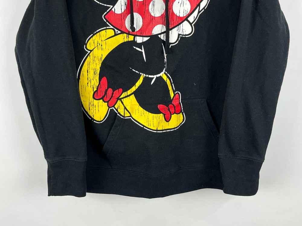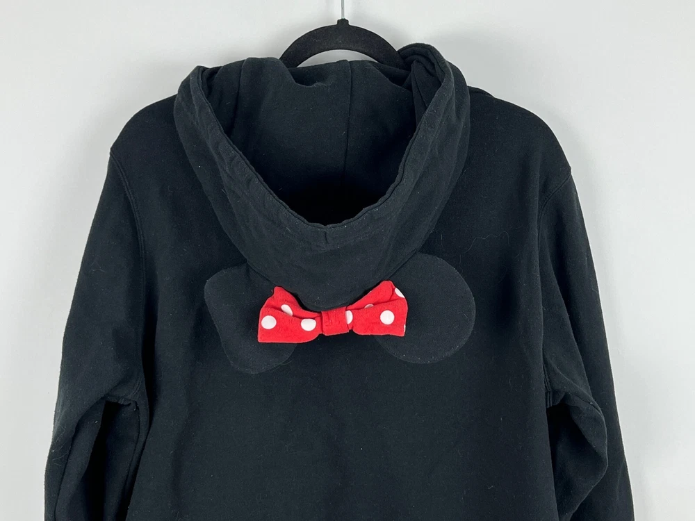 Experience the magic of Disney with this charming Minnie Mouse Hoodie, an authentic piece from the Disney Parks collection. Crafted with a blend of cotton and polyester, this hoodie is designed for comfort and durability. The classic black color, complemented by the iconic Minnie Mouse emblem, makes it a versatile addition to any wardrobe, perfect for Disney enthusiasts and casual wearers alike. This pullover is not just a stylish piece but also practical, featuring convenient pockets and an elastic waist that provides a comfortable, stretchy fit. The round neck and long sleeves make it an ideal choice for various occasions, from activewear to casual outings. With its easy care and machine washable fabric, this hoodie is sure to become a treasured part of your everyday attire. Dimensions Shoulder to shoulder 18in Pit to pit 23in Shoulder to bottom 26in