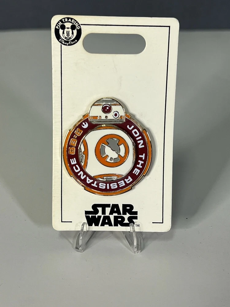 Join the resistance with this Disney Parks Pin featuring the beloved Star Wars character, BB-8. This spinning trading pin is a must-have for any Disney or Star Wars fan. The pin is part of the exclusive Disney parks Collection and features the iconic BB-8 droid from the popular Star Wars franchise. The pin is perfect for collectors or anyone who wants to show their love for the franchise. It is a great addition to any collection of Disneyana or Star Wars memorabilia. Don't miss your chance to own this unique piece of Disney history.
