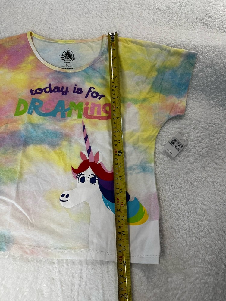 Delight your little one with the enchanting Disney Parks “Today is for Dreaming” Unicorn T-shirt, tailored for girls size large (10/12). This whimsical tee features a vibrant multicolor graphic print that captures the magic of Disney, making it a treasured addition to any young dreamer's wardrobe. The classic fit ensures comfort for all-day play, while the soft cotton blend material provides a cozy feel.