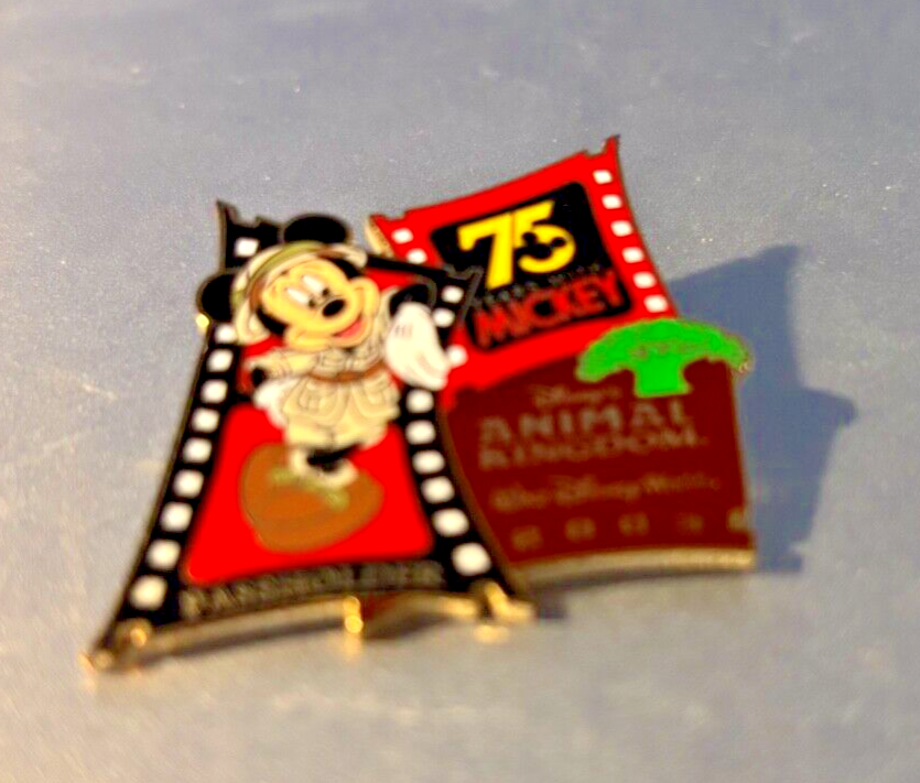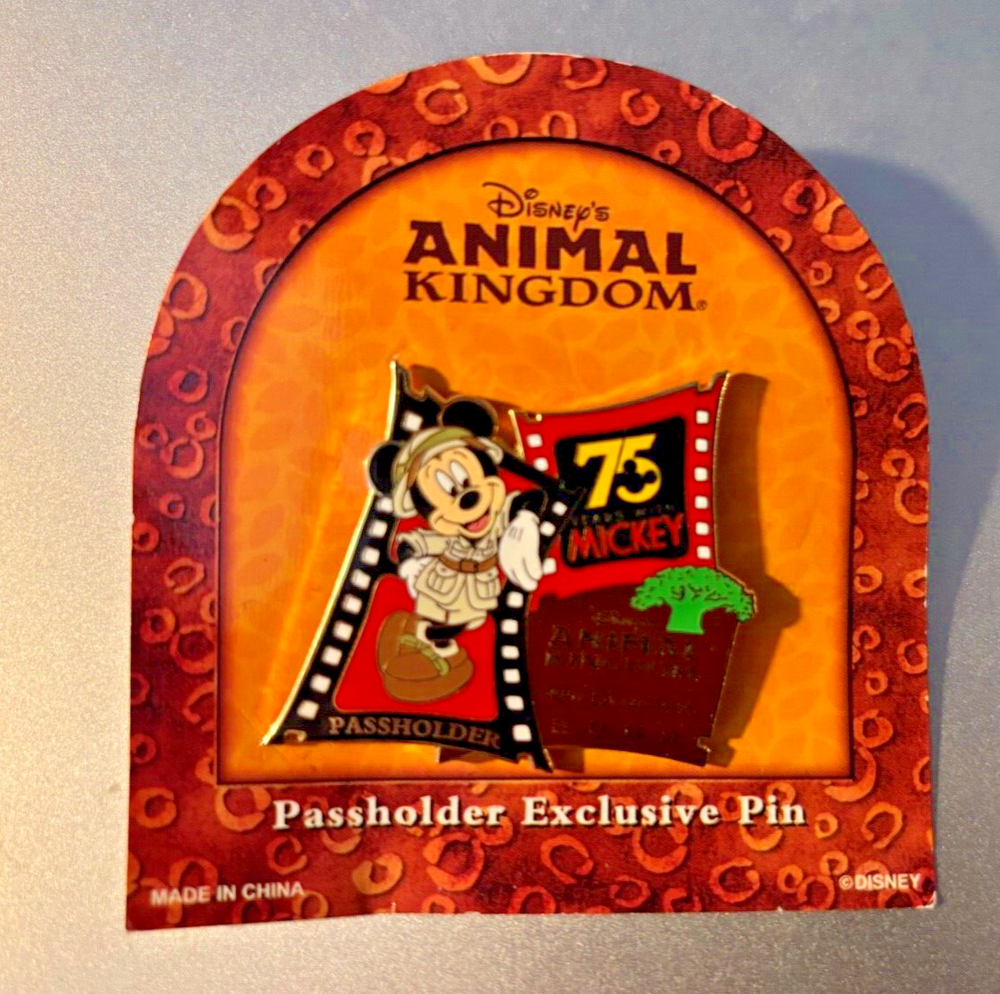 Disney Passholder Exclusive WDW Animal Kingdom 75 Years Mickey Mouse 2003 Collectible Trading Pin. L/E of 7500. Measures approximately 1 1/2" wide by 1 1/2" high. All on original card. Will Combine Shipping.