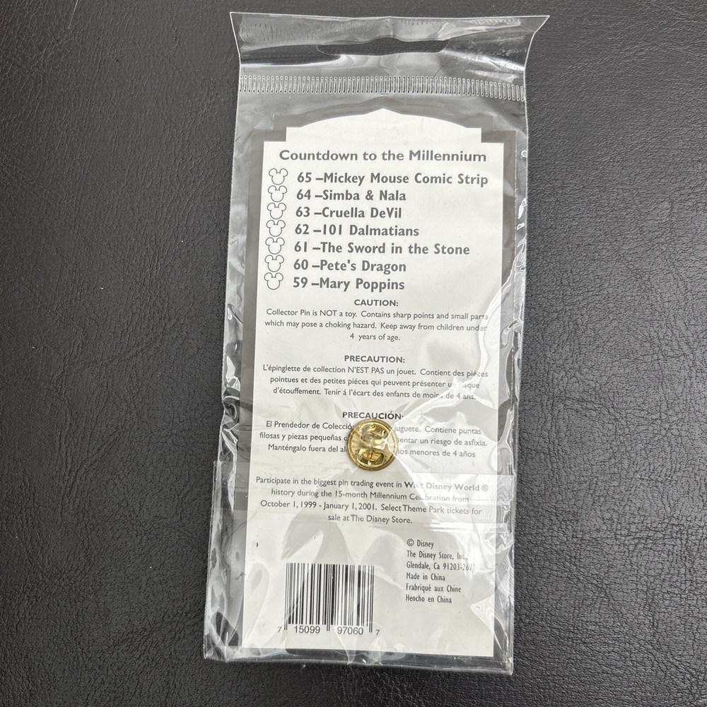 This Disney trading pin from the 1999 Countdown To The Millennium collection features Pete's Dragon and is brand new in its original packaging. The pin showcases the character in brilliant detail and is a must-have for any Disney or Pete's Dragon fan. The pin is a single type and is a part of the Other Disney Pins & Patches category under Collectibles and Disneyana. This is the perfect addition to any pin collection or a great gift for a Disney lover. #60