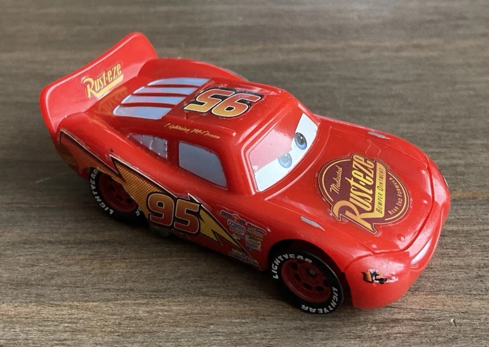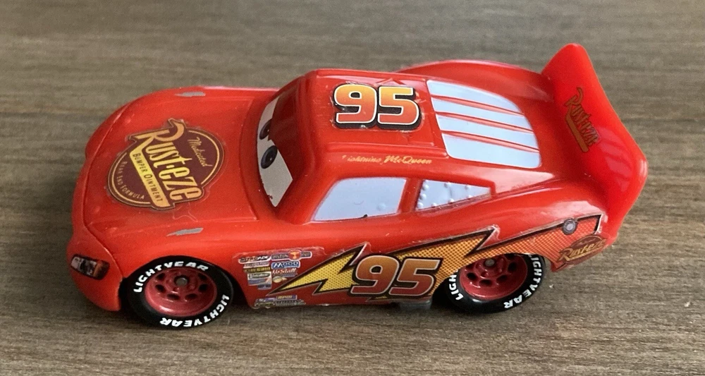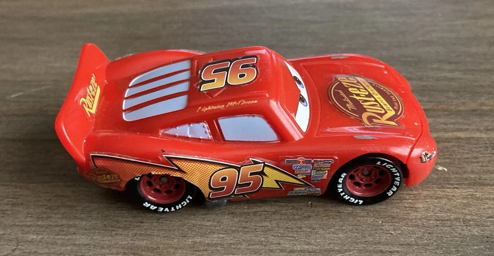 McQueen Chester Whipplefilter is made for diecast and is in good played with condition - some paint wear Also included is an all plastic Lightning McQueen car which is also in good played with condition 1:55 scale More Disney Cars listed