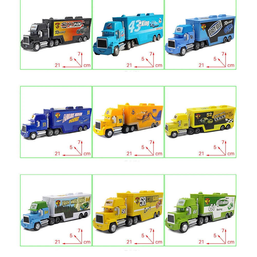 Seller Eecommendation Disney Pixar Cars Diecast Lot Lightning McQueen 1:55 Queen Car Toys Loose Gift 10.99 USD Free shipping Disney Pixar Cars Monster Tow Mater 1:55 Diecast Model Car Toys Gift for Boy 5.99 USD Free shipping Kids Toy Disney Pixar Cars Movie Frank Harvester Tractors Diecast Amusing Cars 11.49 USD Free shipping Mattel Disney Pixar Model Cars McQueen 1:55 Diecast Lot Choose Loose Kid Toy New 10.99 USD Free shipping B2F3**Disney Pixar Cars**ALL SERISE Alloy Diecast Cars McQueen Mater Toy Gifts 10.99 USD Free shipping Disney Pixar Cars Lot Lightning McQueen 1:55 Diecast Model Car Toy Gift for Boy 8.89 USD Free shipping Disney Pixar Cars Lightning McQueen 1:55 Diecast Metal Model Car Toy Gift Kids 9.99 USD Free shipping Disney Pixar Cars Lot Lightning McQueen 1:55 Diecast Model Car Toys Gift for Boy 8.99 USD Free shipping Disney Pixar Cars Mater as Darth Vader & Drag racing Black Knight Model Car Toy 13.99 USD Free shipping Disney Pixar Cars Lightning McQueen Mater 1:55 Diecast Model Toy Car Boy Gifts 9.49 USD Free shipping Disney Pixar Cars 2 Racers Exciting Match Metal 1:55 Diecast Toy Car Boy Gift 10.99 USD Free shipping Disney PixAR Movie Cars 3 Crazy School Bus Miss Fritter Die-cast Alloy Toys Cars 17.98 USD Free shipping 2-Car Disney Pixar Cars DiNOco to Rusteze &DiNOco Mcqueen 1:55 Diecast Toys Car 16.99 USD Free shipping Disney Pixar Cars Complete Line McQueen Truck Dusty 1:55 Diecast Model Toy Gifts 8.99 USD Free shipping Disney Pixar Cars 2 Professor Z Miles Axelrod 1:55 Metal Diecast Toys Cars 11.99 USD Free shipping Disney Pixar Cars Chuy El Materdor Frank Tractor Metal 1:55 Diecast Model Toy 10.98 USD Free shipping Description: - Little fans can play big with oversized deluxe vehicles of popular Disney/Pixar Cars characters! In 1:55 scale, they are perfect for realistic push around and racing play. With bright colors, true-to-movie details and moving wheels, kids can recreate favorite action scenes, or speed off on new adventures. - Choose your ride and meet you at the races! Each sold separately, subject to availability. Colors and decorations may vary. -Makes a unique gift Set your favorite characters at the starting line and enjoy big movie adventures in compact size. -Loose Without original packaging Material: Large car alloy shell + plastic chassis and accessories Size: 21.5 * 4.5 * 6.5 CM Package include: 1pcs Toy Hauler Truck YOU MAY ALSO LIKE Disney Pixar Cars Lightning McQueen 1:55 Diecast Metal Model Car Toy Gift Kids 9.99 USD Free shipping Disney Pixar Cars Lightning McQueen Mater 1:55 Diecast Model Toy Car Boy Gifts 9.49 USD Free shipping Disney Pixar Racing Alloy Toy Car New McQueen Sports Car Children's Gift 12.79 USD Free shipping Mattel Dinsey PIXAR New Cars 3 Crash Party Lot Dr. Damage Arvy Diecast Toy Cars 23.39 USD Free shipping 2PCS Disney Pixar Cars Lightning McQueen Mack Haulers Truck Racers Diecast Toy 10.99 USD Free shipping PIXAR Cars The new model No.67 Carbon Cyber Alloy Car produced in 2024 Loose 7.99 USD Free shipping Disney Pixar Cars Chuy EI Materdor 1:55 Diecast Model Bulldozer Toys Loose 10.49 USD Free shipping Disney Pixar Cars Flo Ramone 1:55 Diecast Model Toys Car Metal Loose Gift Kids 12.83 USD Free shipping Disney Pixar Cars Frank Harvester Cow Tractor 1:55 Diecast Model Toys Car Gifts 12.58 USD Free shipping 1~2PC Disney Pixar Car Cherry Blossom McQueen/Mater Diecast Alloy Toy Car Sakura 14.39 USD Free shipping Disney Pixar Cars Lot NO.86 Dinoco Chick Hicks Model Car Toy New Loose 1:55 11.89 USD Free shipping Disney Pixar Auto Story 3 Racer Die Casting Toy Car1:55Children's Gift Alloy Car 8.99 USD 1.99 USD