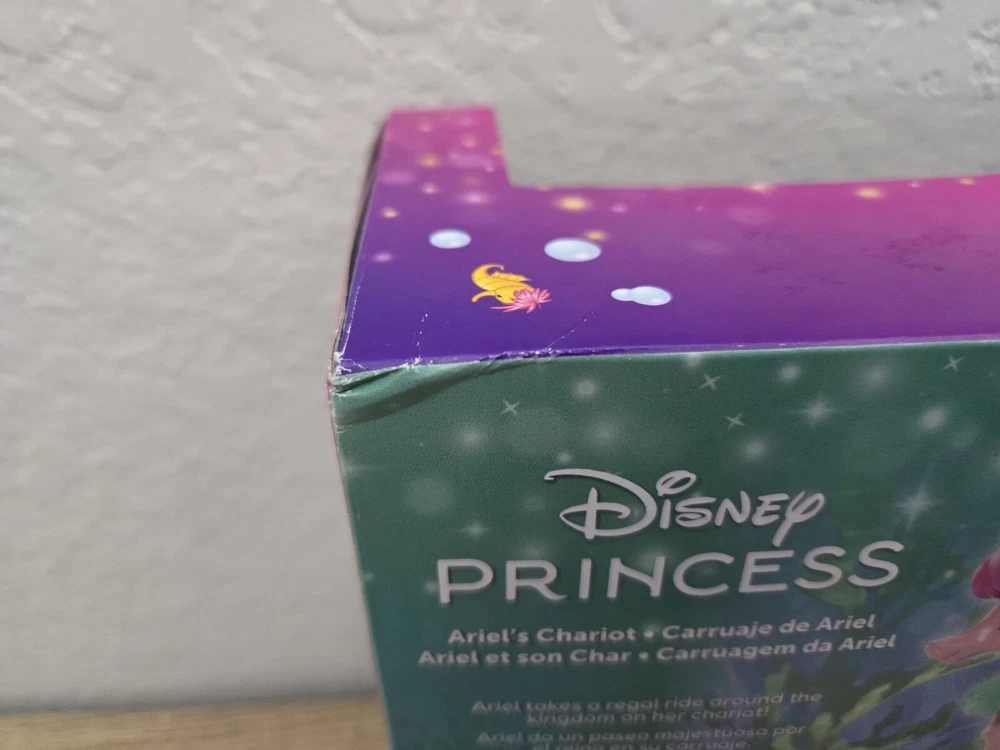 *Free shipping with USPS Ground Advantage. Ships ASAP. Packaged with care. Smoke-free home.* Please note minor imperfections on box as shown in the attached pictures. The playset is not damaged. This Disney Princess Ariel's Chariot playset comes with an Ariel doll and Sebastian character, perfect for all occasions. The doll has wavy red hair, blue eyes, and light complexion. The set includes removable clothes, a back and forth chariot movement, and is packaged in its original unopened box. The playset is part of the Disney Series and is manufactured in China with plastic materials. It is recommended for ages 3+ and is a great addition to any Disney or Little Mermaid collection. This doll playset is perfect for imaginative play and creates a magical underwater world for Ariel and her friends.