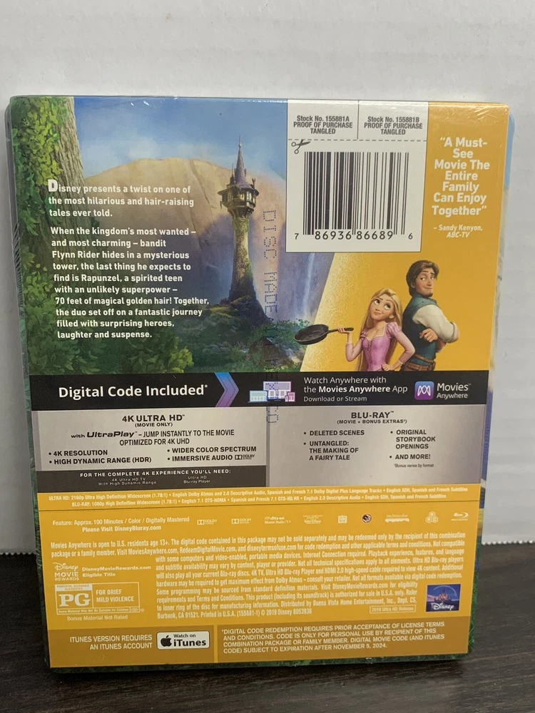 Experience the magic of Disney's Tangled with this 4K UHD Blu-ray set, including the original theatrical version and a digital code for convenient viewing on your favorite device. This steelbook edition is a must-have for any Disney fan or collector, and features stunning visuals and heart-sung lyrics from the beloved animated film. Immerse yourself in the world of children's and family movies with this Disney Tangled set, perfect for a family movie night or a gift for a young fan. With the latest technology from Best Buy, this set is sure to provide a high-quality viewing experience that will transport you to the enchanted world of Tangled.