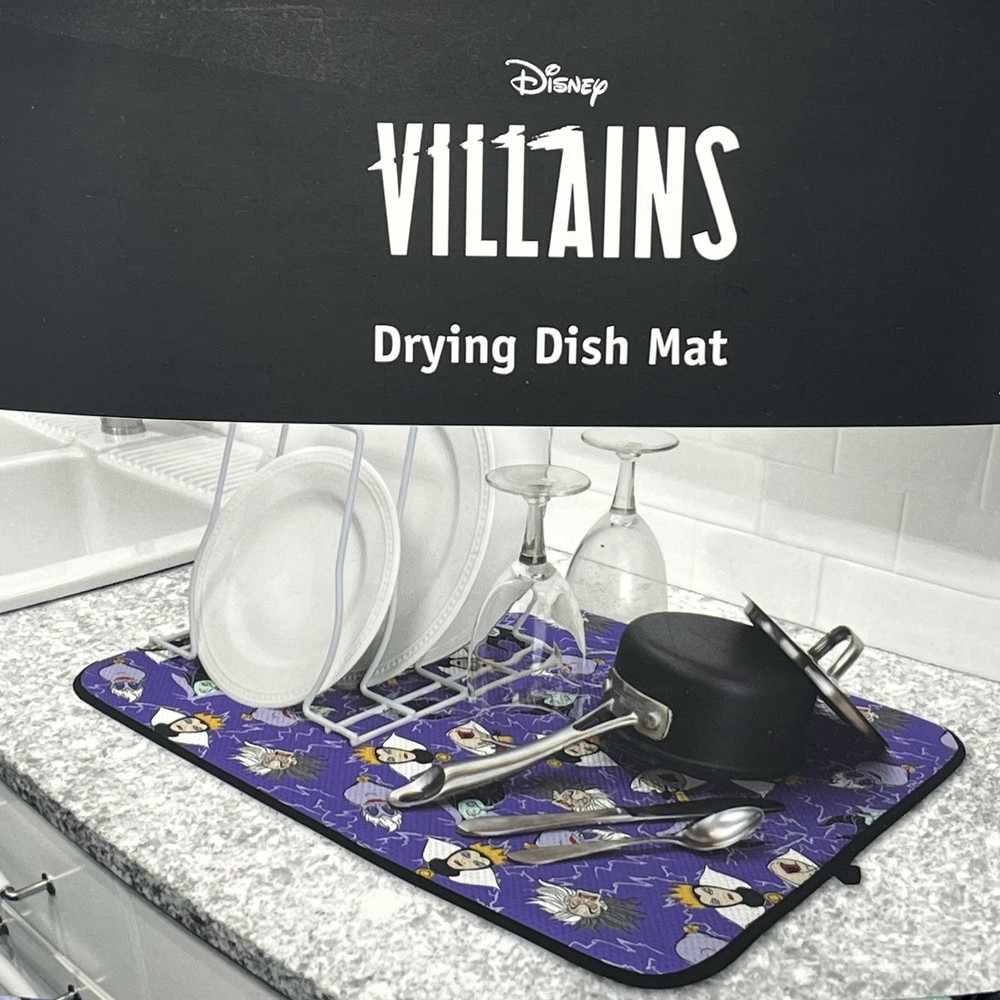 Disney Villains Dish Drying Mat 16”x18” Halloween Maleficent Cruella Ursula NEW