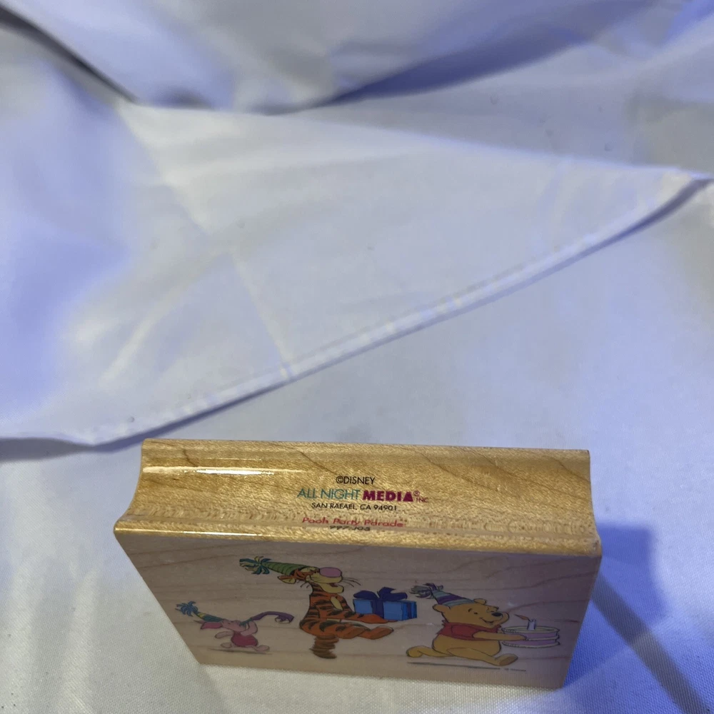 Add a touch of whimsy to your crafting with this Disney Winnie the Pooh Party Parade Birthday Mounted Rubber Stamp. Featuring the lovable characters Tigger and Piglet, this stamp is perfect for creating personalized invitations or adding a cute touch to your scrapbook. Made from high-quality rubber and wood materials, this stamp is sure to last for years to come. Whether you're a fan of cartoons and characters or just looking for a unique addition to your crafting collection, this mounted stamp is a must-have.