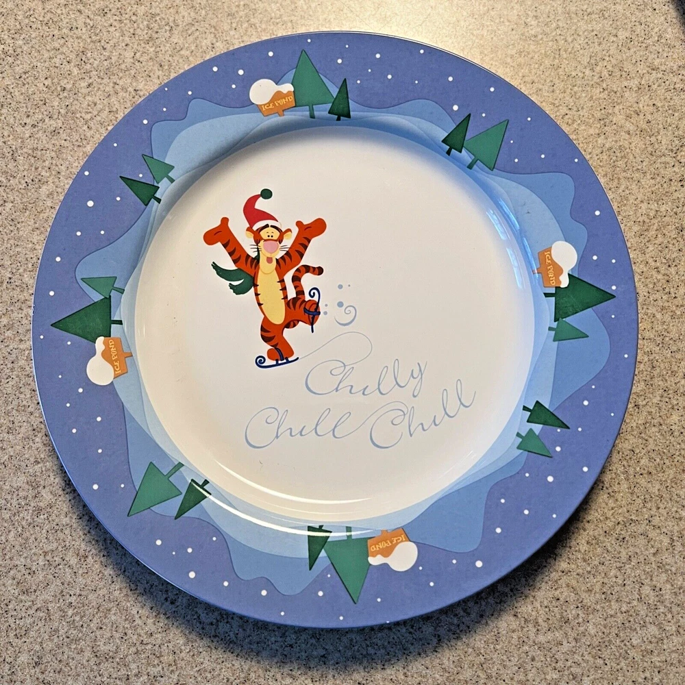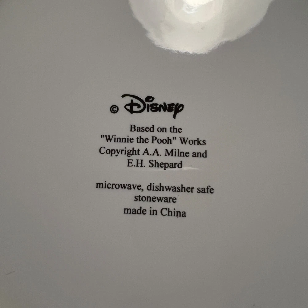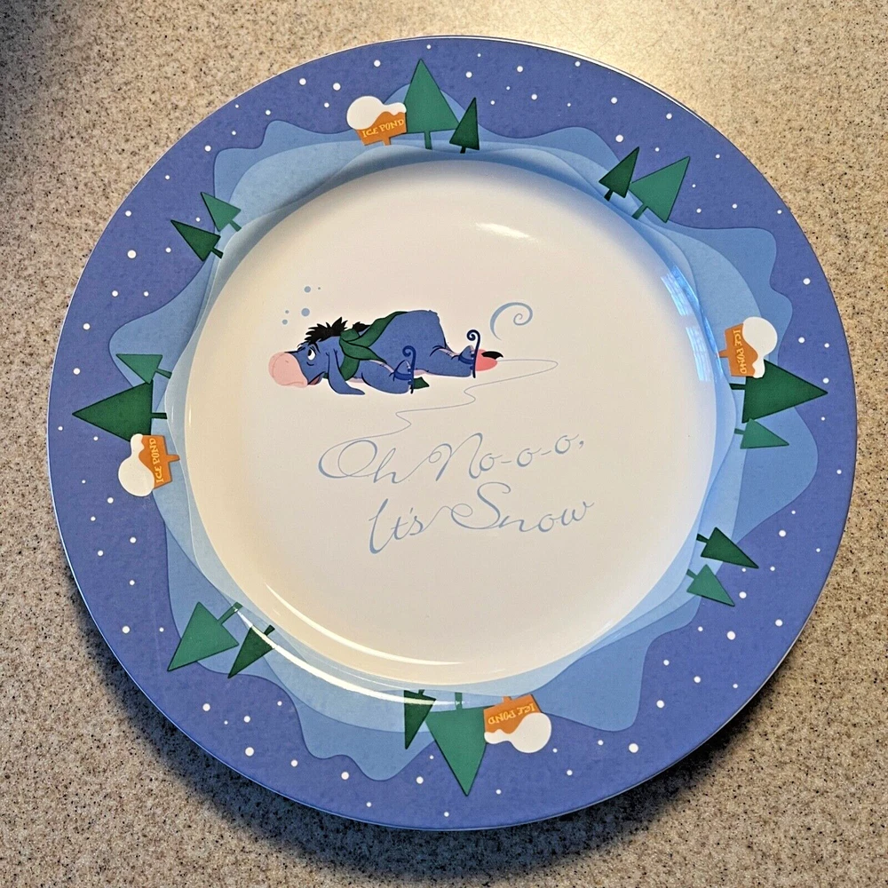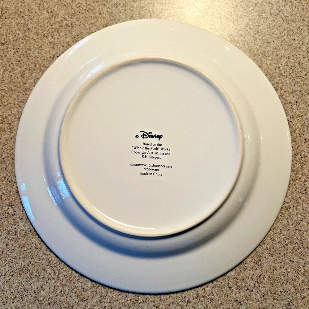 Disney Winnie the Pooh Winter Eeyore Piglet Tigger Salad Plate Set of 4 - 9" Plates are approximately 9 inches in diameter. Made of stoneware. Plates are microwave and dishwasher safe. Shipped with standard shipping .