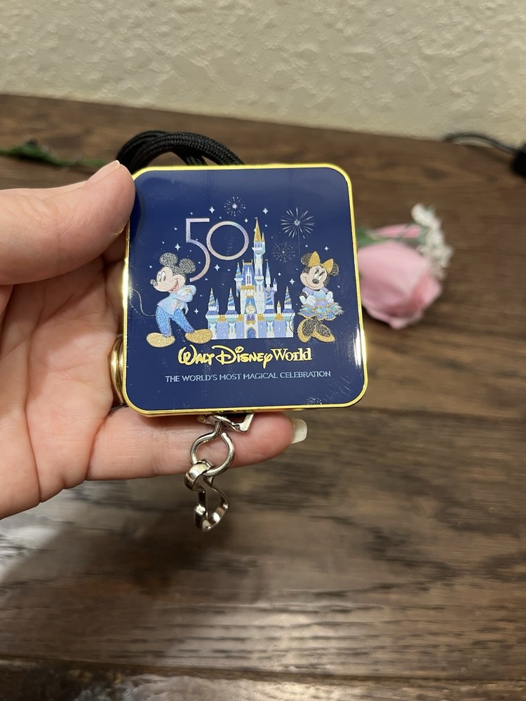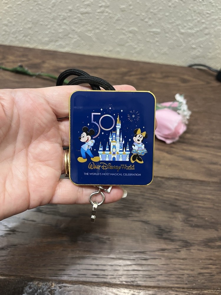 The Disney World 50th Anniversary Castle Lanyard with Medal Pin is a special collectible item celebrating the iconic theme park's milestone anniversary. The lanyard features the classic Disney Castle design, making it a must-have for any Disney fan or collector. The included medal pin adds an extra touch of magic to this commemorative piece, making it a valuable addition to any Disneyana collection. Perfect for wearing or displaying, this limited edition item celebrates the joy and nostalgia of Disney World for half a century.