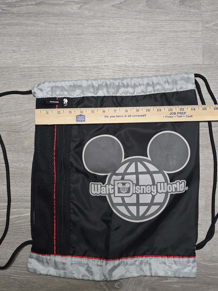 Walt Disney World Mickey Mouse Drawstring Bag Backpack Tote With Zipper Pouch Please review all photos carefully as they are part of the description. All measurements for this item can be viewed in the photos. Any flaws can also be seen there. Zoom in and take a closer look at this product.