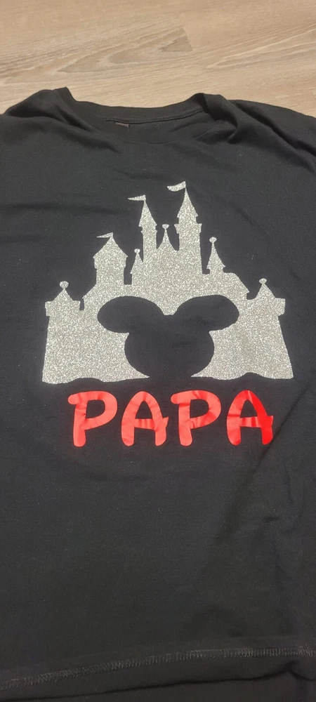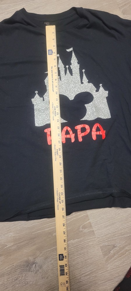 Show off your love for Mickey Mouse with this Disney World PAPA T-Shirt. This comfortable and stylish black tee features the iconic character on the front, along with the word "PAPA" in bold letters. The shirt is suitable for any adult man looking to add some Disney magic to their wardrobe. Made by Anvil and crafted in Haiti, this shirt is perfect for collectors of contemporary Disneyana. The size of this XL tee is sure to fit any fan comfortably. Don't miss out on this opportunity to show off your love for Mickey Mouse and add this T-shirt to your collection! SW1