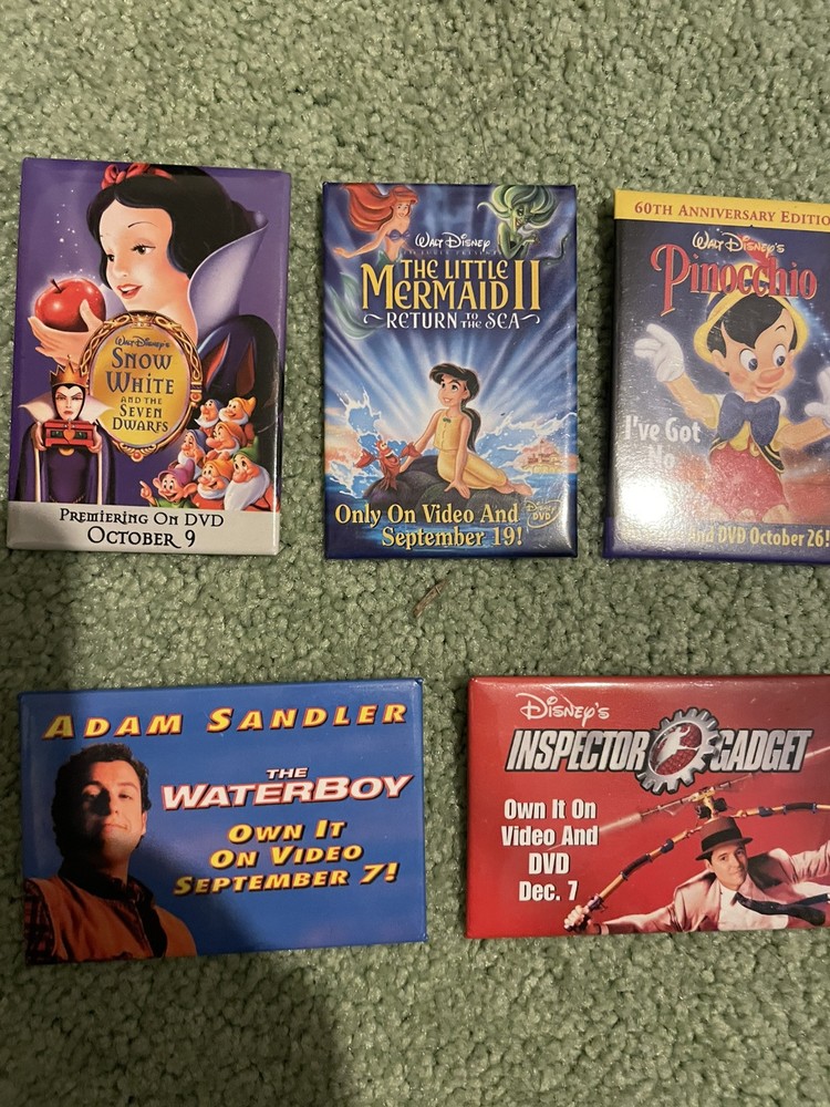 The product is a set of 11 Disney promotional pins featuring Disney branding and franchise. The pins are likely collectible items from the Contemporary era (1968-Now) and fall under the Disneyana category. Lot includes: Spirit, Air Bud, Inspector Gadget, Waterboy, A Bugs Life, Snow White, Little Mermaid 2, Pinocchio, Whispers, Mickeys House of Mouse Villains, Max Keebles