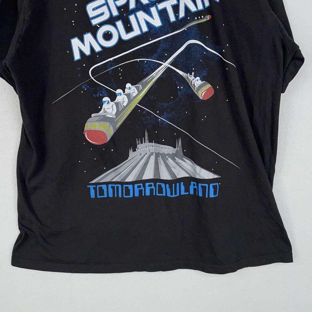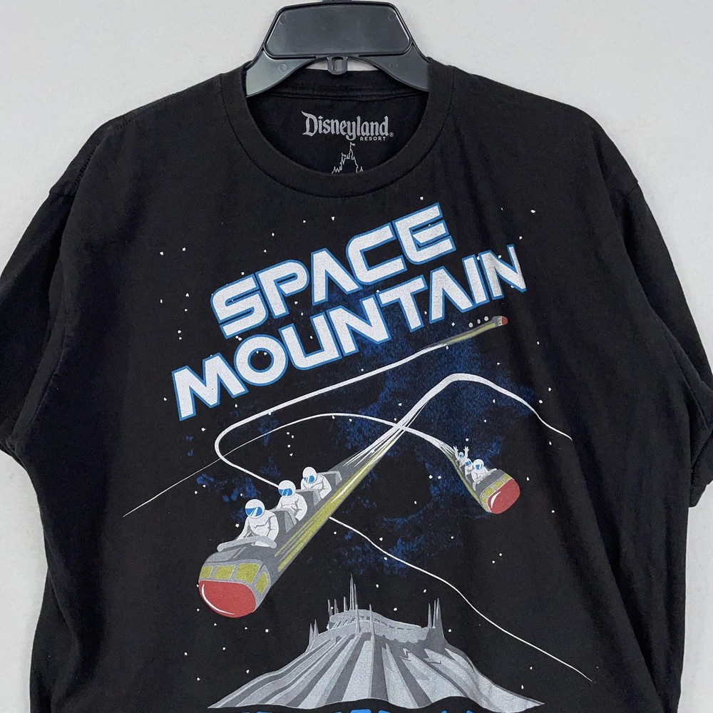 Disneyland Space Mountain Disney Shirt Mens 2XL Black Tomorrowland Ride Graphic Previously worn with light general wash wear, no major stains or holes observed. Graphic print remains clear and vibrant. Brand: Disneyland Resort (Disney) Item: Short sleeve graphic Shirt, crewneck style. Design: Front graphic features Space Mountain ride rockets with astronauts and the Tomorrowland attraction building, with "SPACE MOUNTAIN" and "TOMORROWLAND" text. Color: Black with blue, white, gray, and red print. Gender: Mens (unisex adult fit). Size on tag: XXL (2XL). Material: 100% cotton. Tag details: Printed neck tag; RN# 0100520; © Disney; made in Mexico. Features: Soft cotton knit fabric, ribbed crew neckline, straight hem, large front graphic print, plain back. 22852 Measurements: - Previous washings may change the sizing written on the tag. - Please refer to the photos above for all measurements. - Please compare our measurements to that of one of your favorite garments. - Please note, item measurements are approximate . All items are bagged and sealed after being photographed, then stored in a smoke free environment to ensure the item is exactly the same as when photographed. All items have been washed per eBay standards & policies. I carefully package and ship daily. Feel free to contact me with any questions.