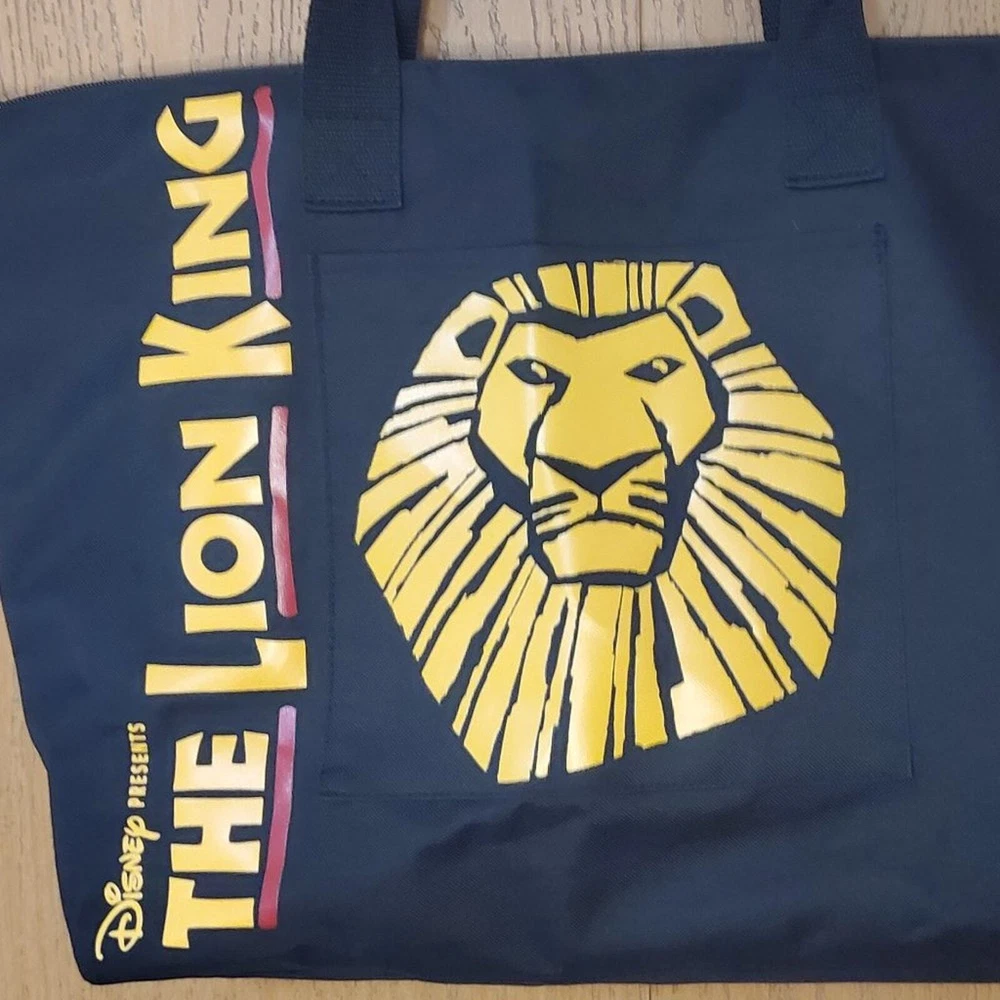 Immerse yourself in the grandeur of Disney's The Lion King with this Black Broadway Musical Zip Tote Bag. Crafted from durable canvas, this tote bag is both stylish and functional, providing ample space for all your essentials. Designed with a spacious interior, this tote bag is perfect for carrying your belongings with ease. Whether you're heading to work, school, or a day out, this bag can accommodate your needs. The sturdy strap ensures comfortable and secure carrying, while the decent-sized front pocket offers convenient access to smaller items. With the iconic Lion King Broadway Musical design, this tote bag pays homage to the timeless tale and its extraordinary legacy. The black color adds a touch of elegance and versatility, making it a perfect accessory for any occasion. Carry the spirit of The Lion King wherever you go, and let this zip tote bag become a treasured reminder of the powerful story and music that touched your heart. Embrace the roomy practicality and sturdy construction of this Broadway Musical Zip Tote Bag and showcase your love for the majestic world of Disney's The Lion King today! Size: Measurements are approximate Condition: Well worn. With the zipper pull frayed Have a magical day Pet-free, smoke-free home.