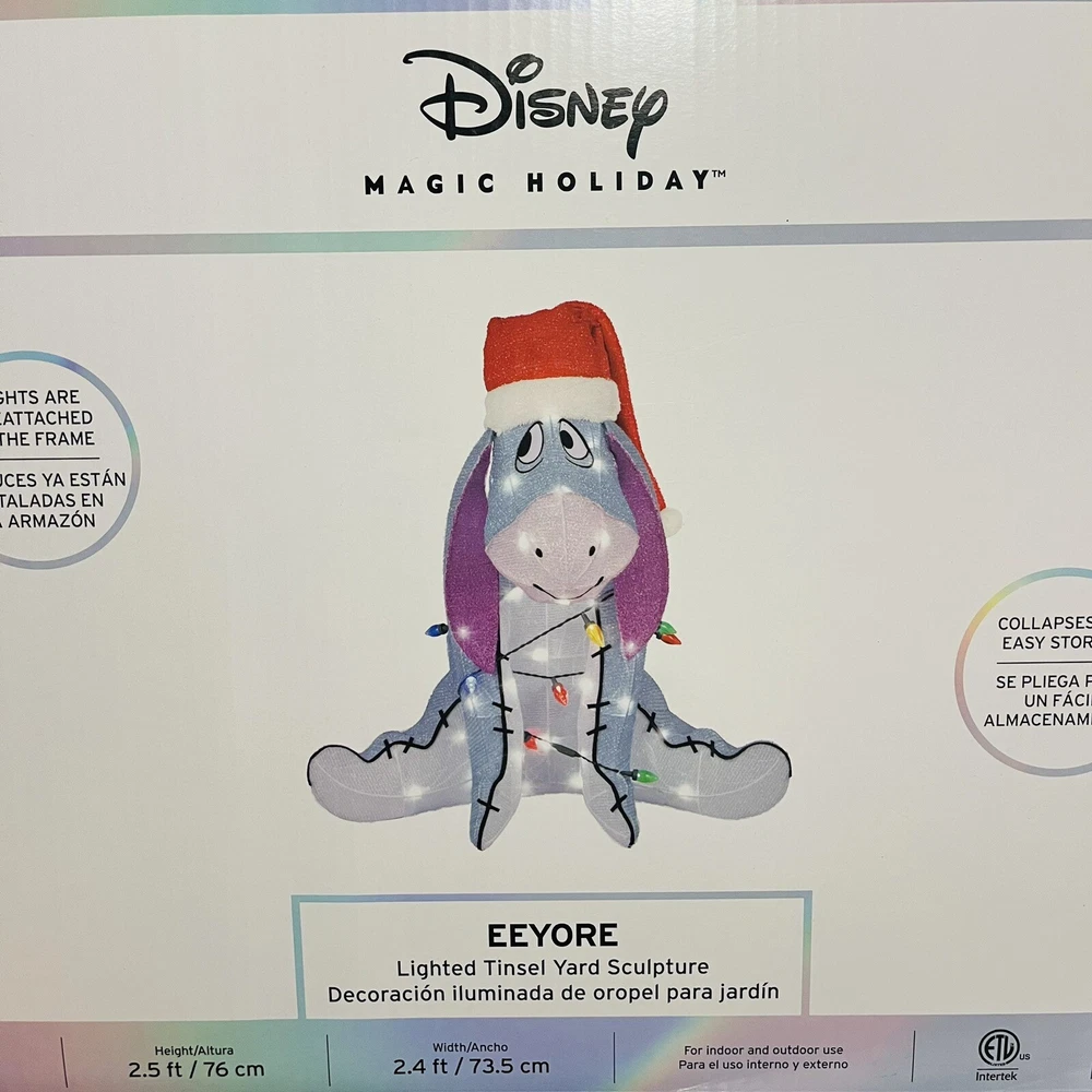 Disneys Winnie The Pooh EEYORE 2.5 FT Lighted Tinsel Yard Sculpture Christmas