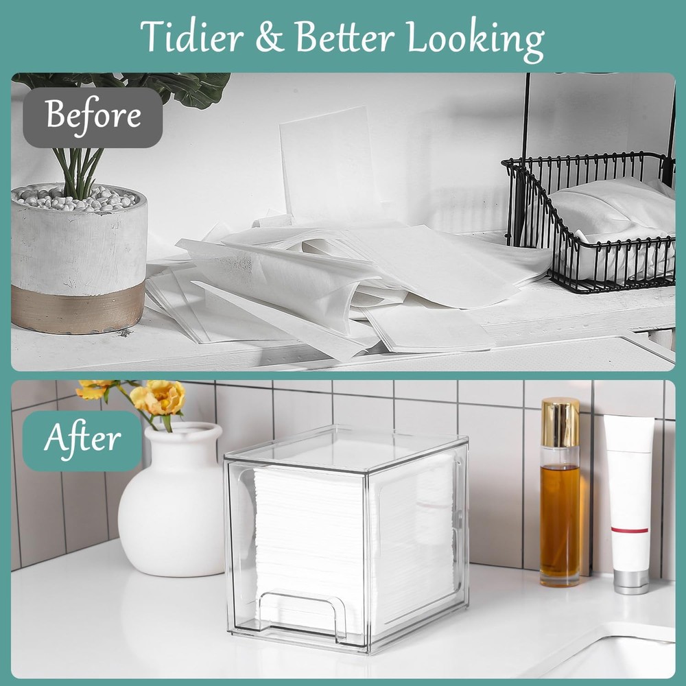 Disposable Face Towel Holder Intended For Clean Skin Club Transparent Description Features: [FUNCTION]: for storage disposable face towel and the top can hold cosmetics [PACKAGE INCLUDING]: face towel holder and non-slip pad [INNER BOX SIZE]: 5.5" * 7.1" * 6.5" [MATERIAL]: PET plastic Product Details: Specific Uses For Product: Cosmetics Material: Plastic Special Feature: Dustproof Color: Transparent Brand: VEGEVIGI Finish Type: Polished Unit Count: 1.0 Count Number of Items: 1 Manufacturer: VEGEVIGI Item Weight: 1.48 pounds Package Dimensions: 7.83 x 7.2 x 6.26 inches Country of Origin: China Finish: Polished Special Features: Dustproof Batteries Required?: No Specific Uses For Product: Cosmetics Material: Plastic Special Feature: Dustproof Color: Transparent Brand: VEGEVIGI Finish Type: Polished Unit Count: 1.0 Count Number of Items: 1 Manufacturer: VEGEVIGI Handling We will ship all orders within 3 business day of payment. Delivery We take pride in offering fast and reliable delivery for your orders! We are committed to getting your products to you as quickly as possible. Generally, we would like to inform you that all orders will be delivered to you within 1-3 business days after processing.However, in some cases, delivery times may vary depending on the buyer's location. Especially in remote or rural areas, the expected delivery time may be extended. In such situations, we do our best to ensure that your order reaches you as quickly as possible.If there are any delays, we will be happy to contact you to explain the situation. Our goal is to enhance your satisfaction with our fast delivery times. We work diligently to ensure that your order arrives safely.Trust us and enjoy our speedy delivery! Return Policy All items qualify for returns within 30 days of receipt. Buyer is responsible for return shipping on any item that is not damaged. Feedback We take our reputation seriously, we buy and sell online, so we understand the value of trust. If you are unsatisfied with your order, please contact us and we will work with you to resolve it to your satisfaction.