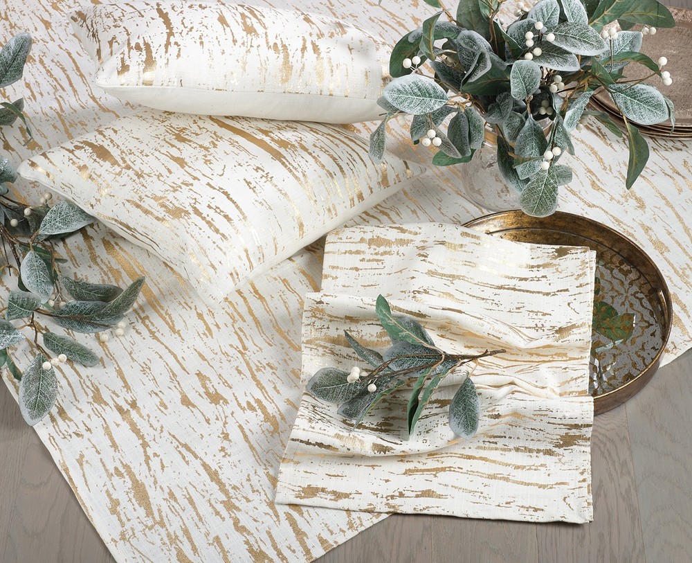 A unique distressed design in gleaming Gold gives this stylish table runner from an ultra glam appeal. 100% cotton, Machine washable This timeless and enduring table runner sets a sophisticated table Foil print design is perfect for both casual and elegant dining Coordinates perfectly with both solid colors as well as patterns or prints